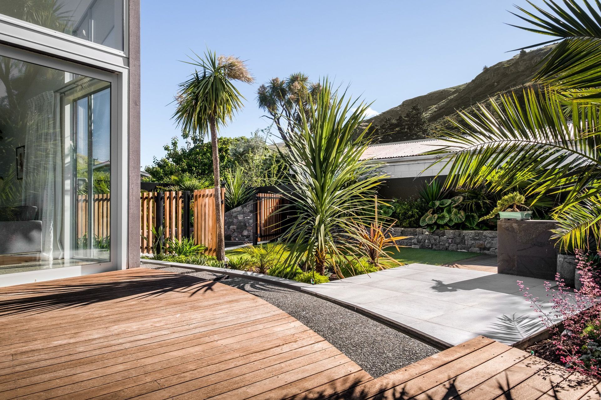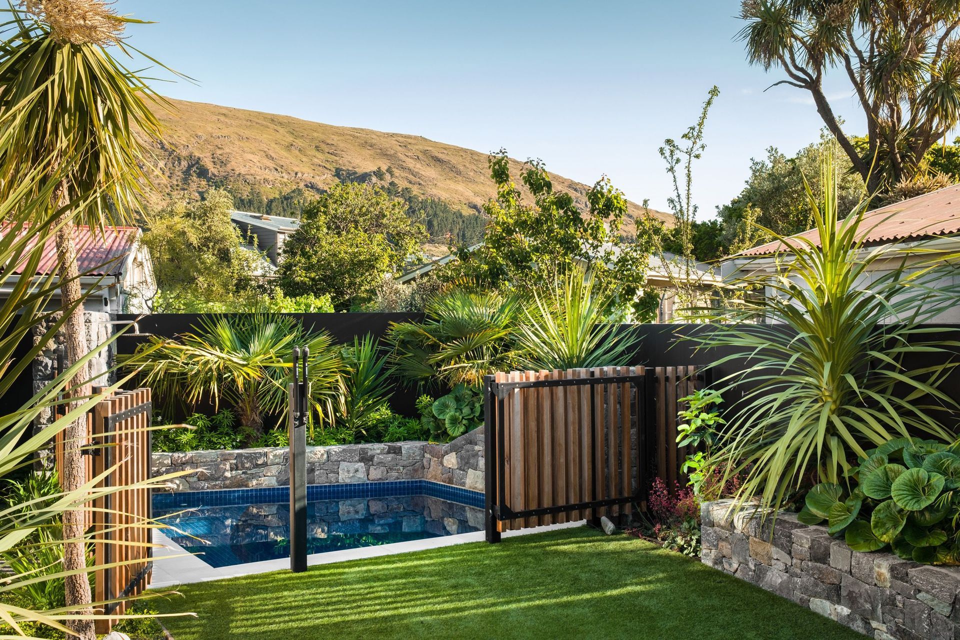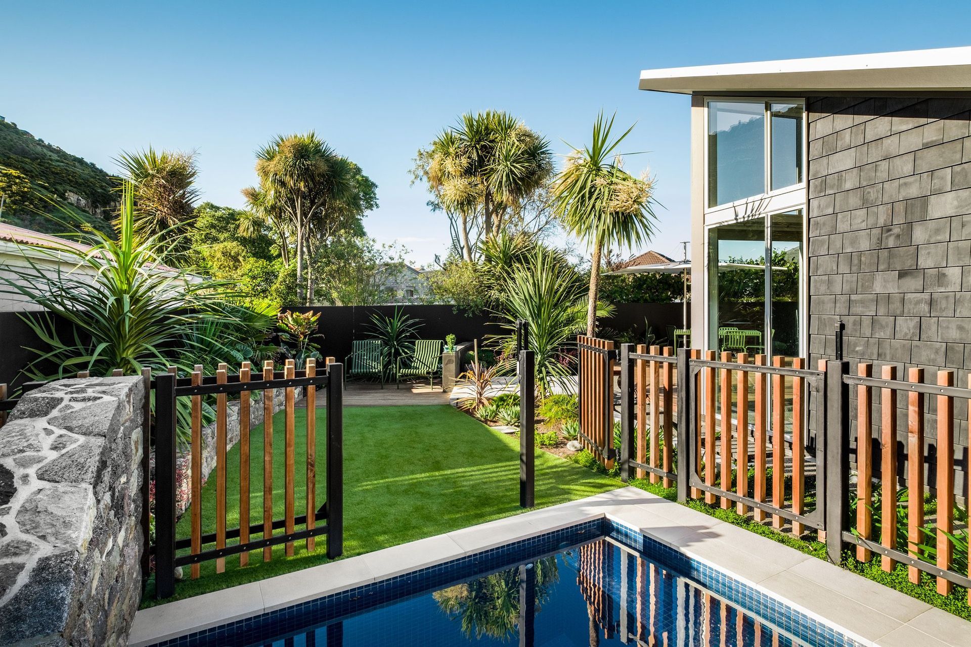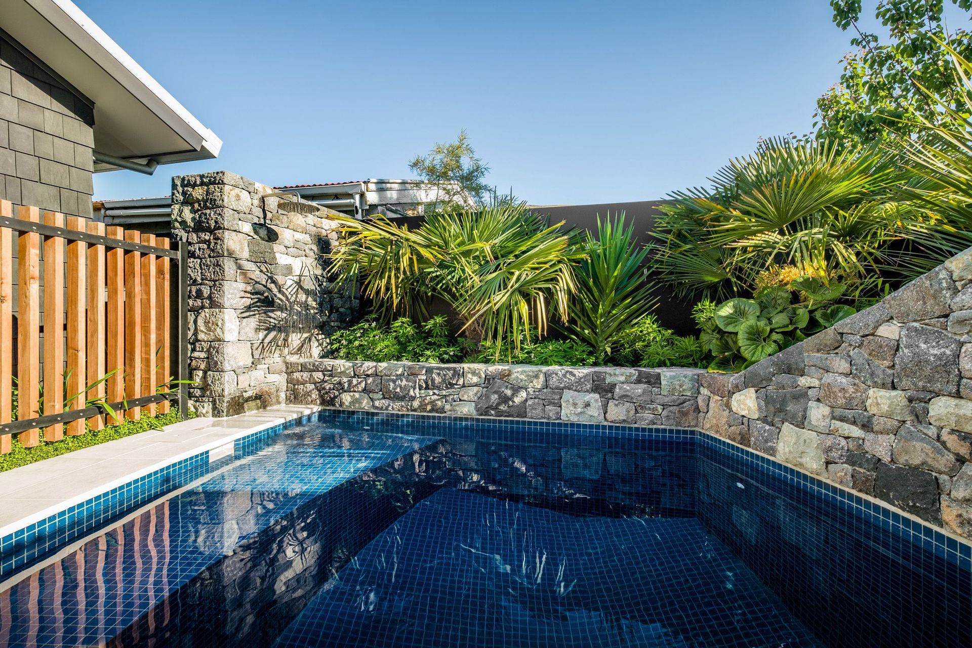 ArchiPro Project Summary - A revitalized outdoor space featuring semi-tropical planting, family-friendly entertainment areas, and locally sourced materials, creating a harmonious coastal retreat.