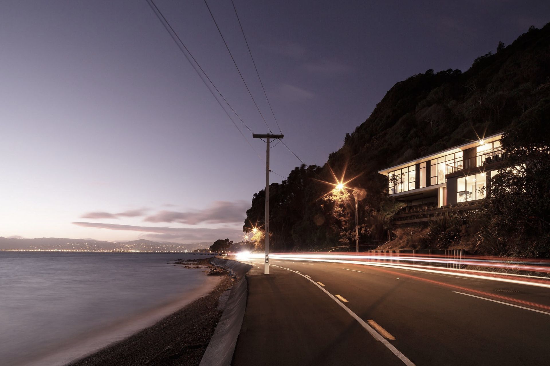 ArchiPro Project Summary - Architecturally designed three-bedroom home in Sunshine Bay, Eastbourne, featuring expansive harbour views, a central skylight, and luxurious finishes, built to withstand coastal elements while harmonizing with its natural surroundings.