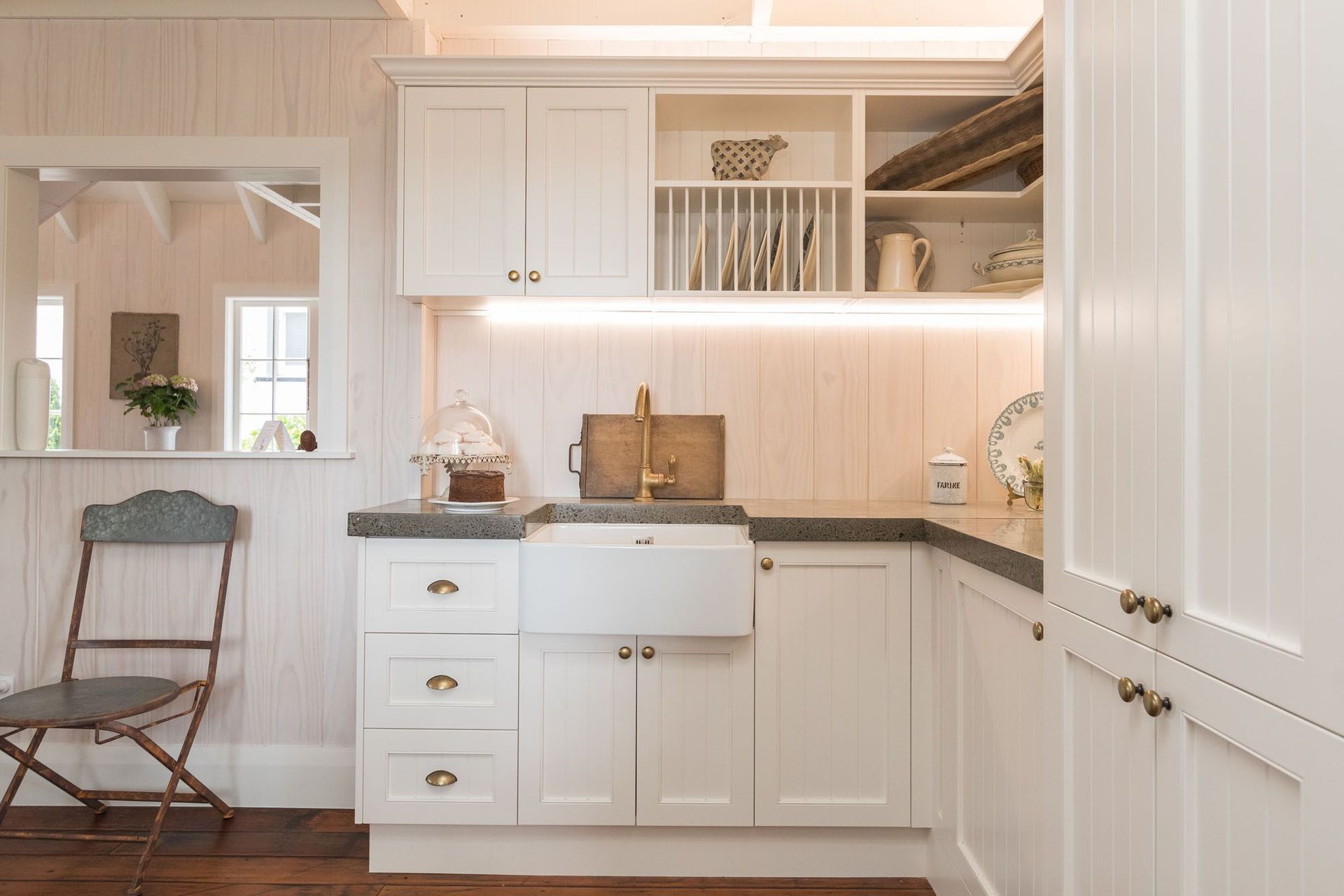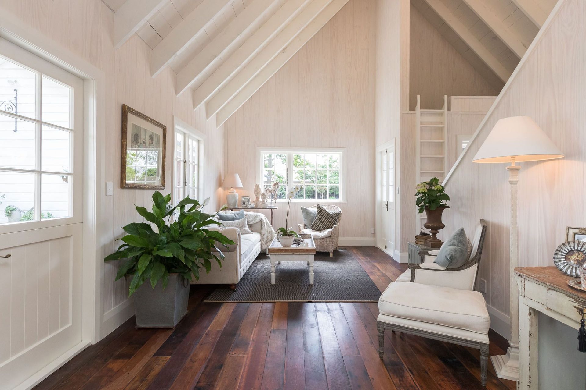 ArchiPro Project Summary - Transformation of an old shed into a stunning space featuring recycled timber floors, tongue and groove white washed walls, custom joinery, and elegant Burlington tapware, showcasing exceptional styling and finishing touches by the owners.