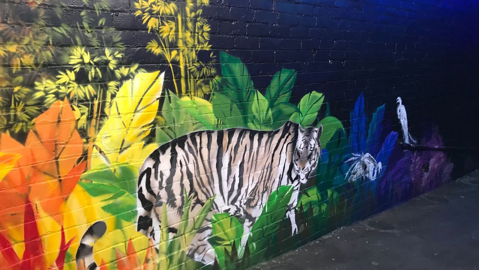 ArchiPro Project Summary - Sweet Affairs features a striking mural of a Siberian tiger, blending street art with architectural elegance in Parnell.