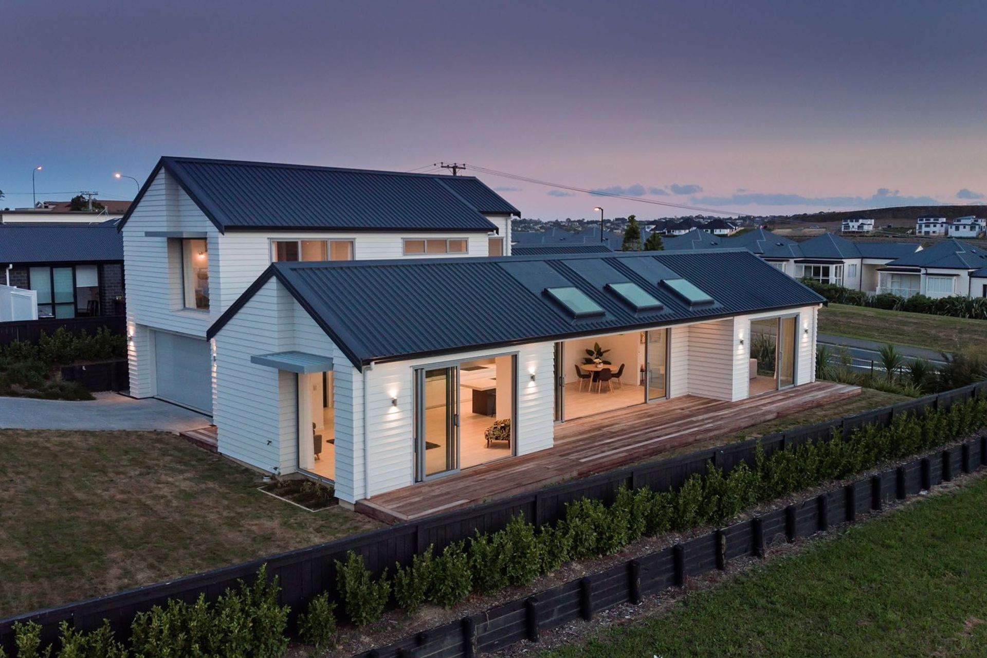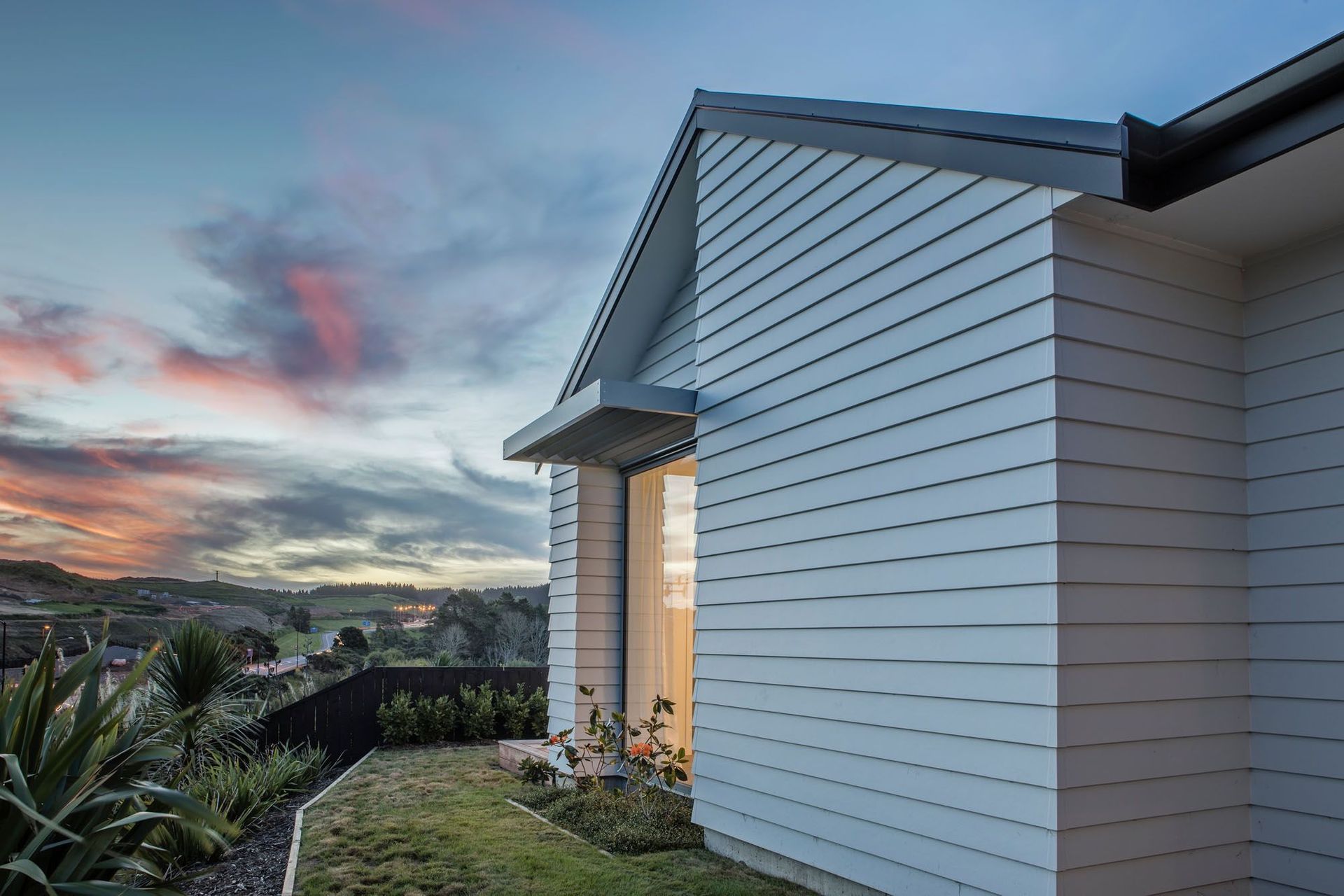 ArchiPro Project Summary - A contemporary 4-bedroom, 2-bathroom showhome that embodies the aspirations of modern New Zealand families, featuring a classic weatherboard exterior with a modern twist, designed to highlight versatile design options and premium finishes.