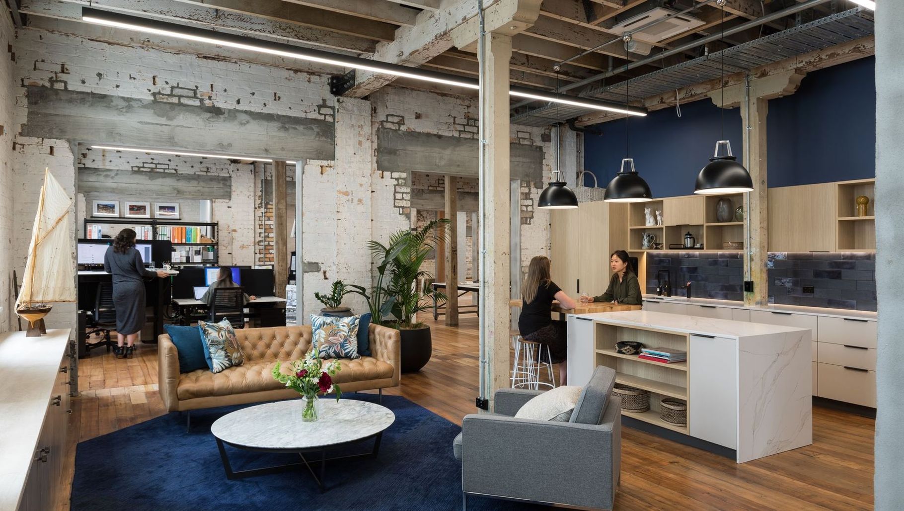 ArchiPro Project Summary - A harmonious blend of heritage and modernity in the Tailor Inc office, featuring casual workspaces, a boardroom with views of the Britomart Hotel, and inviting kitchen and lounge areas, all within a historically rich 386m2 environment.