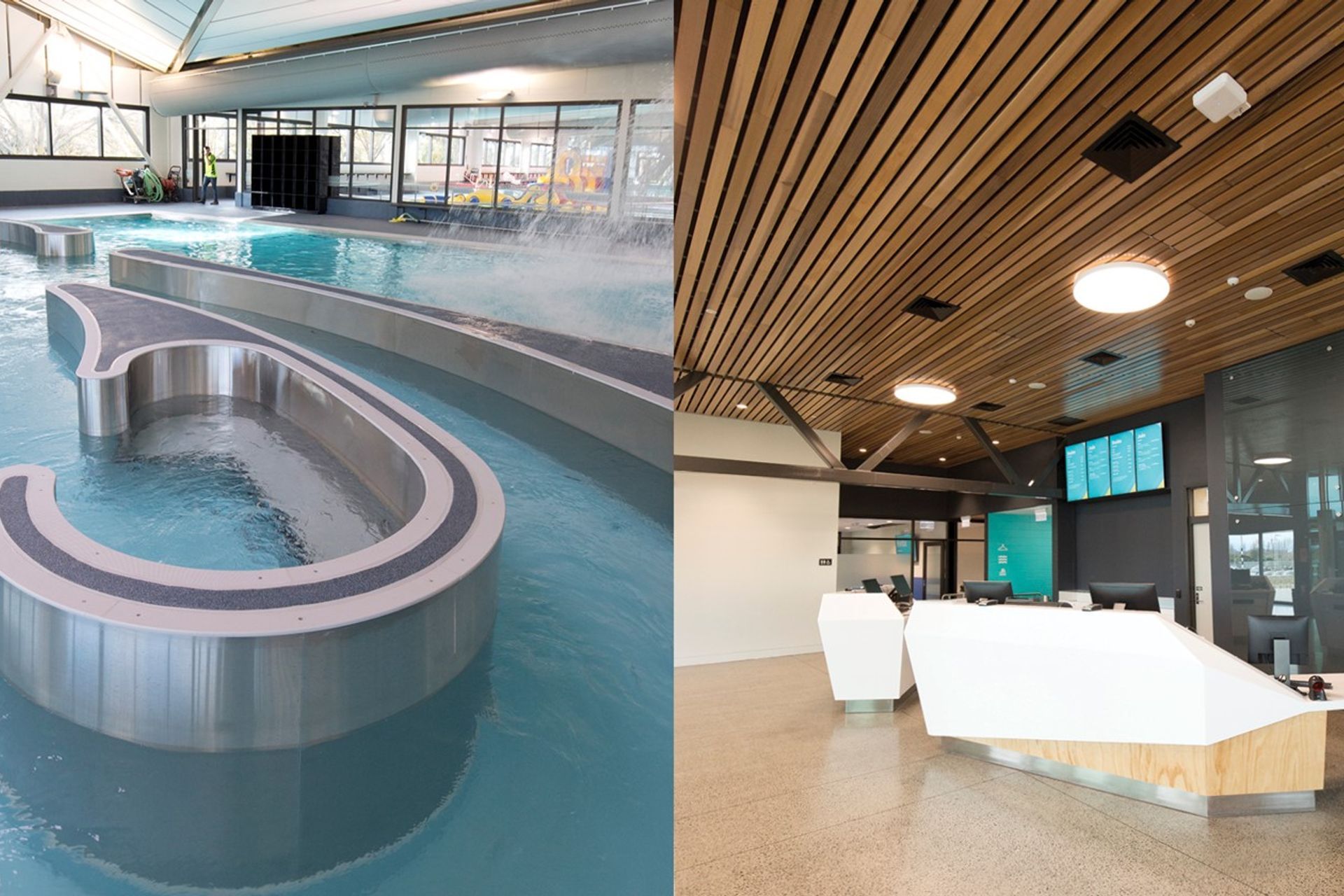 ArchiPro Project Summary - Taiora: QEII Recreation and Sport Centre features state-of-the-art aquatic facilities, including a 10-lane pool with a moveable floor, a unique hydroslide, and comprehensive fitness amenities, all designed to enhance community recreation and resilience.