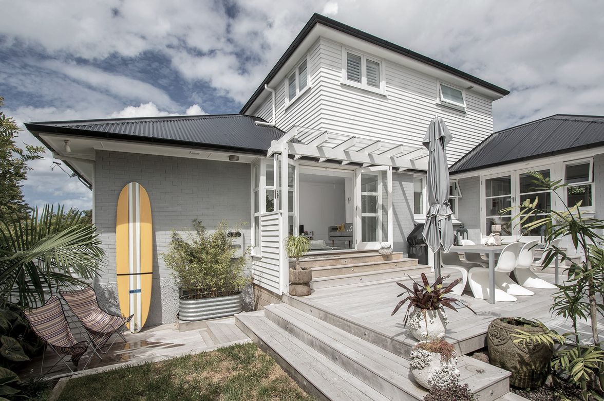 ArchiPro Project Summary - Take 2 Takapuna showcases modern architecture harmoniously blended with nature in a vibrant residential setting.