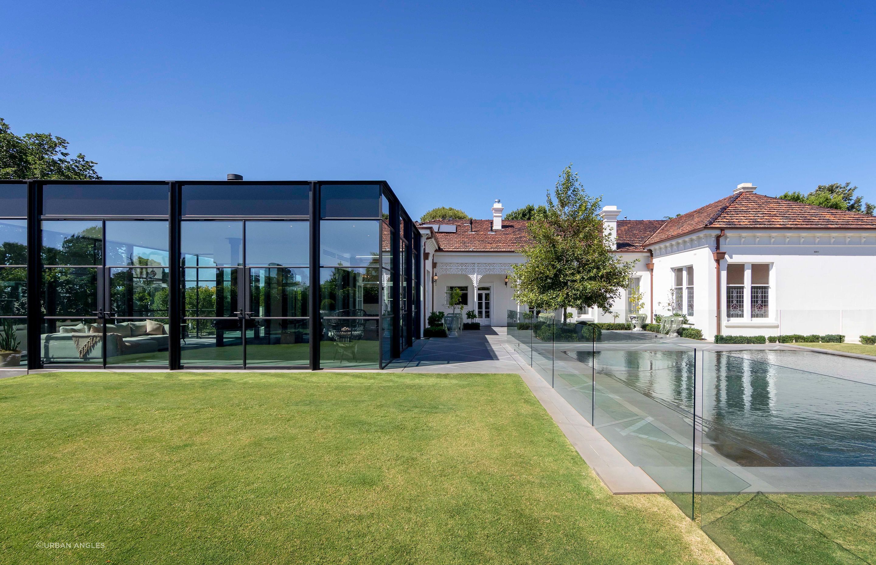 ArchiPro Project Summary - A modern extension to a heritage-listed residence featuring an in-ground pool, basement parking, and a wine cellar, all set within a botanical garden landscape, completed in 2019.