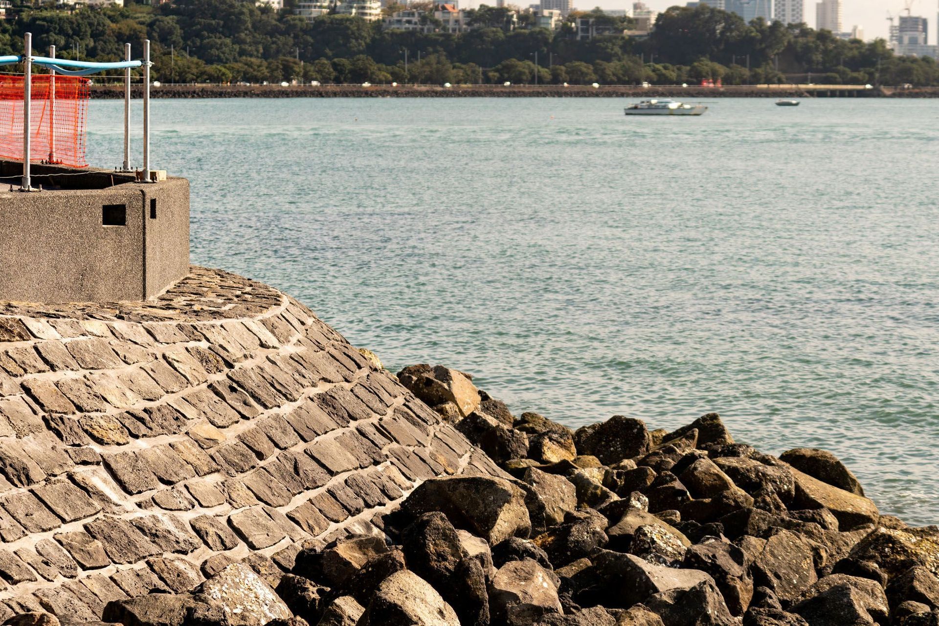 Tamaki Drive sea wall.