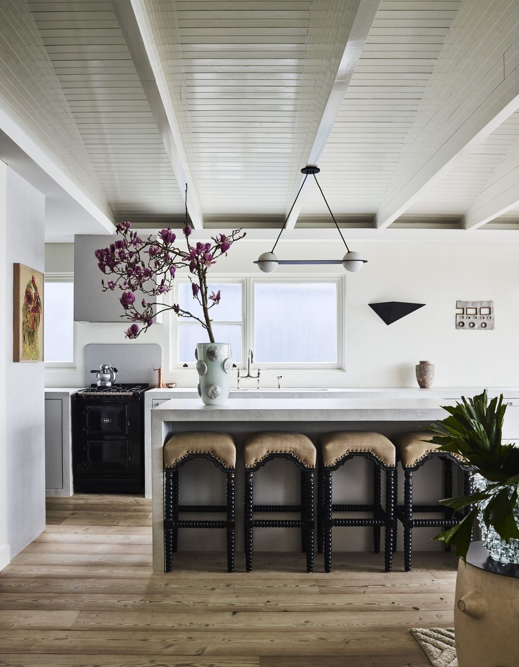 ArchiPro Project Summary - A stunning coastal kitchen design by Tamsin Johnson, featuring exquisite Perrin & Rowe tapware and a carefully curated selection of furnishings that enhance the relaxed vibe of Tamarama House.