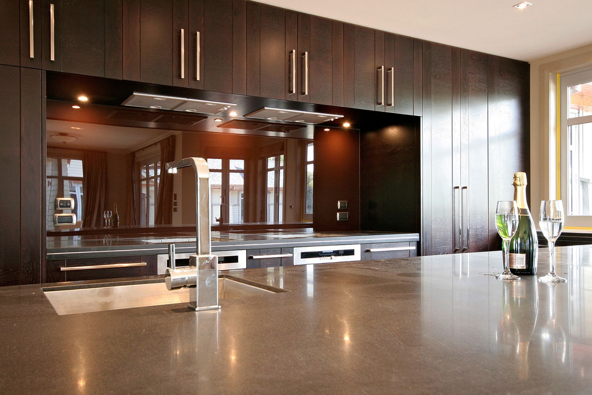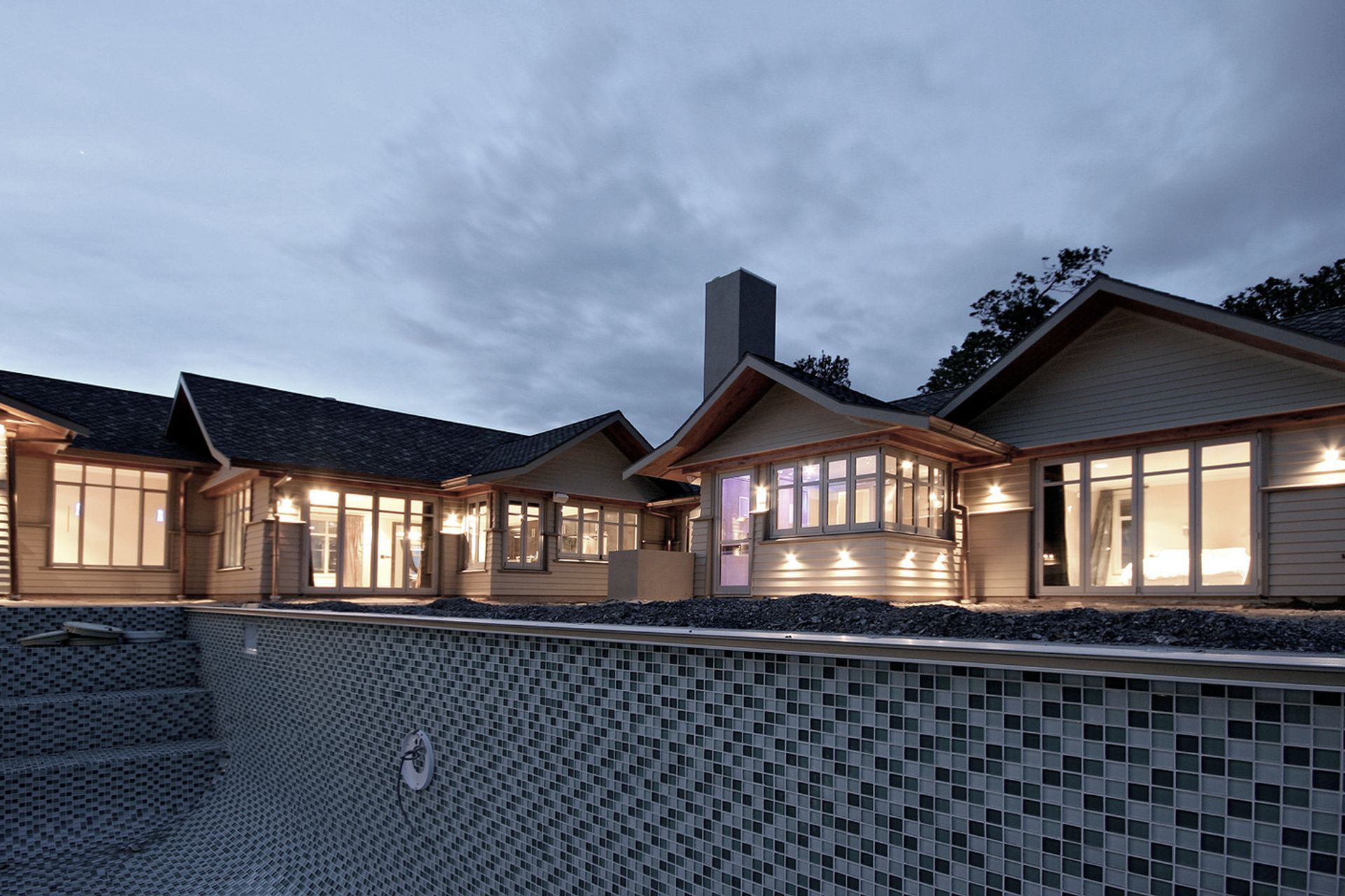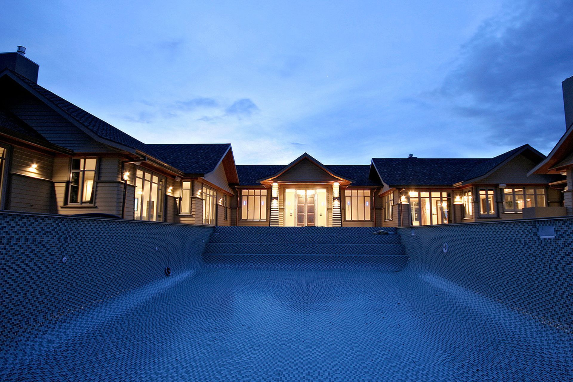 ArchiPro Project Summary - A stunning 750 sq/m family home featuring east and west wings, breathtaking north-facing views over Cambridge, and exquisite finishes including stainless steel and glass mosaics, honed granite countertops, and a beautiful swimming pool.