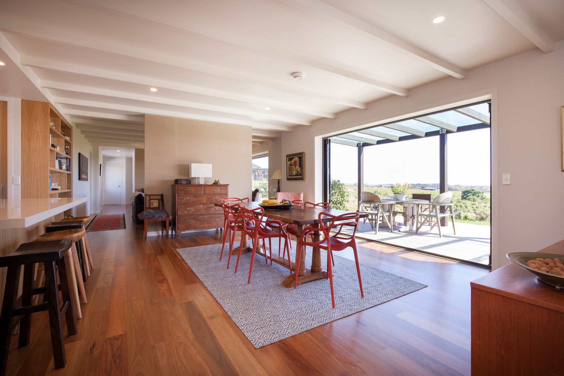 ArchiPro Project Summary - Classic single-level home in Oakura, completed in 2015, featuring stunning sea views, a flexible accommodation wing, and energy-efficient design with high-performance insulation and ventilation systems.