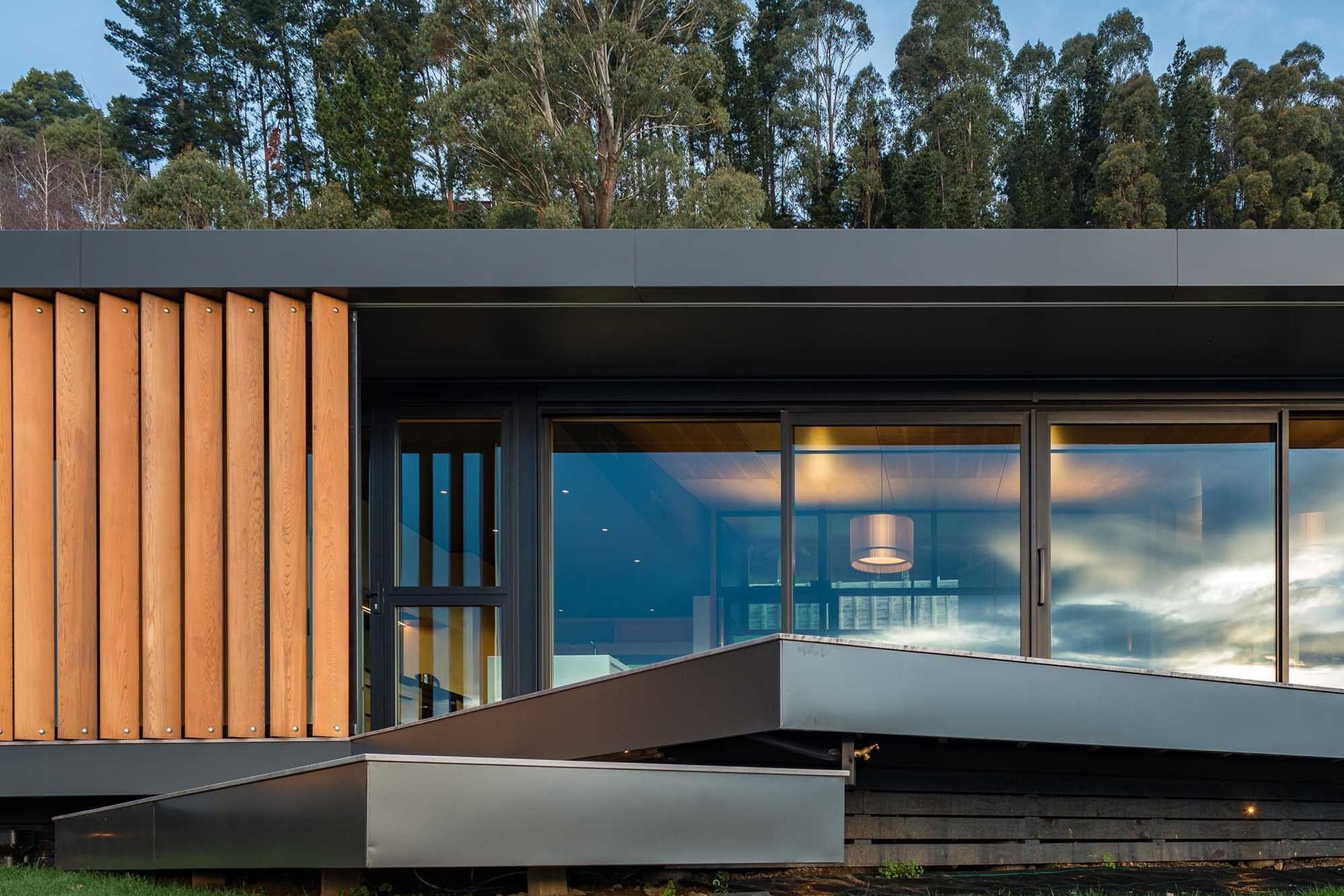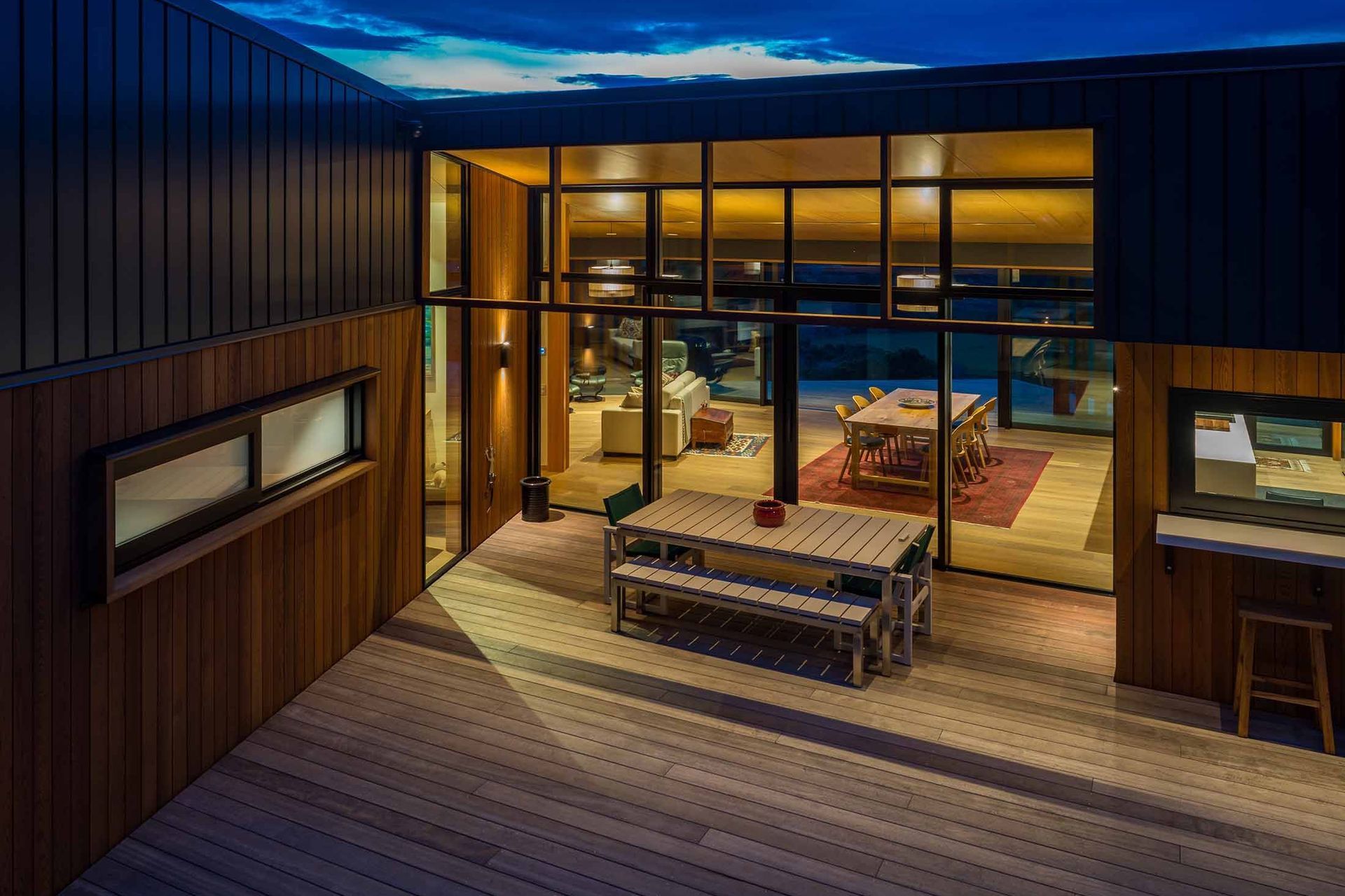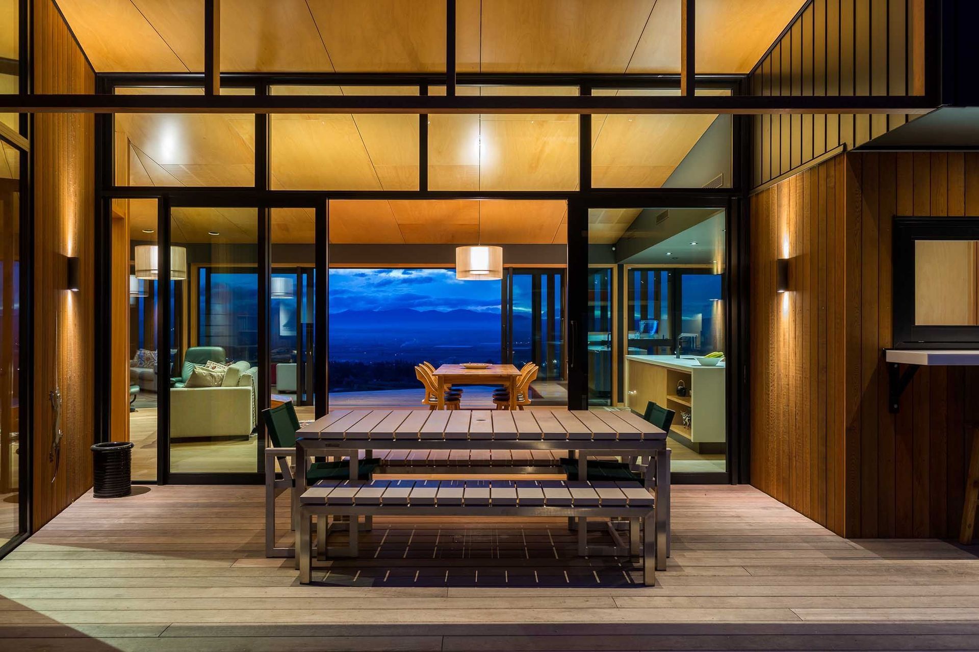 ArchiPro Project Summary - Award-winning Tasman View House features a low-maintenance design with stunning views, innovative shading solutions, and sustainable water management, seamlessly blending indoor and outdoor living in the foothills of the Richmond Ranges.