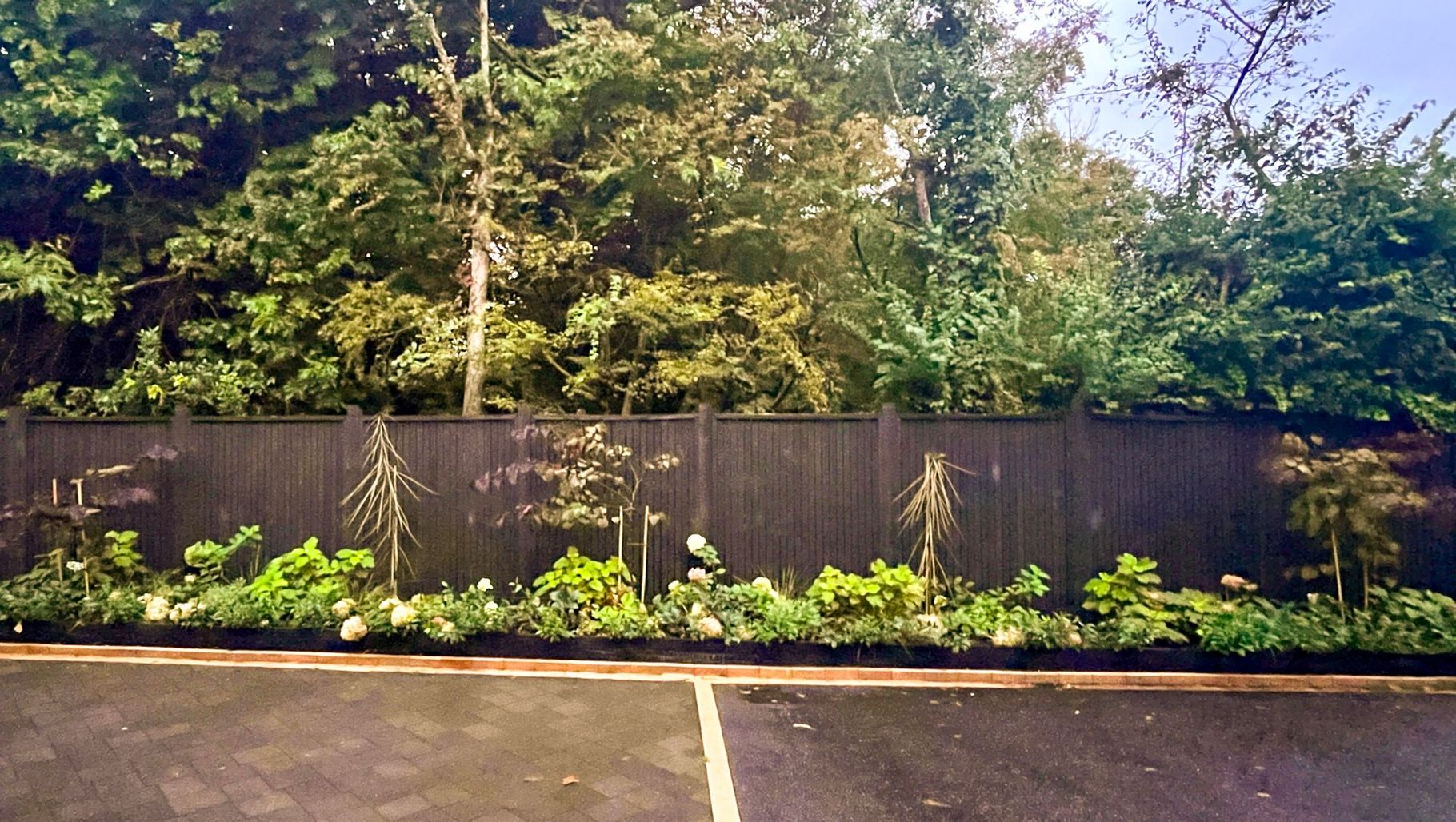 ArchiPro Project Summary - A stylish driveway refurbishment transforming a plain fence and weedy berm into an inviting approach, featuring textural garden beds that celebrate seasonal changes and modernize the plant palette with established shrubs and new sculptural species.