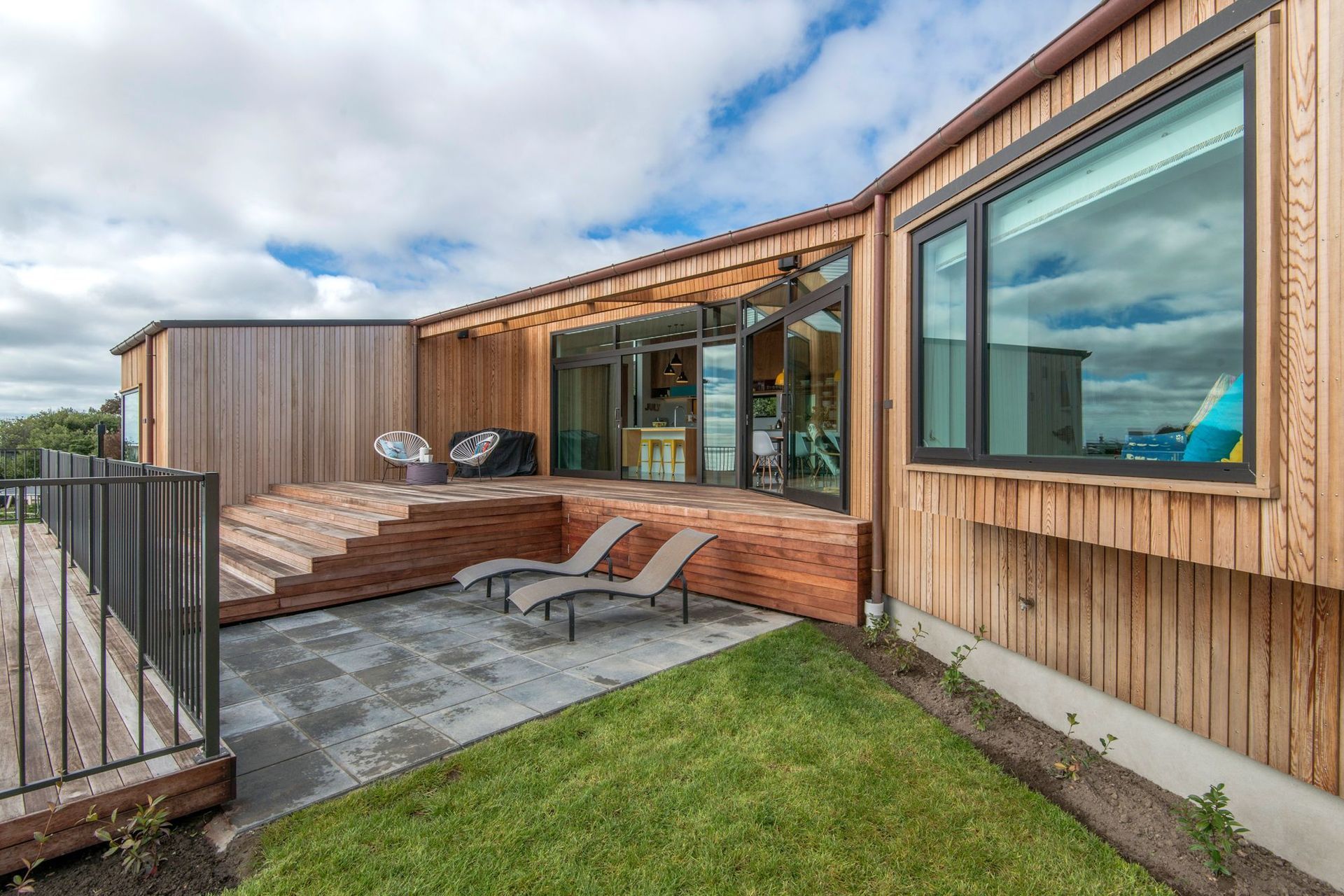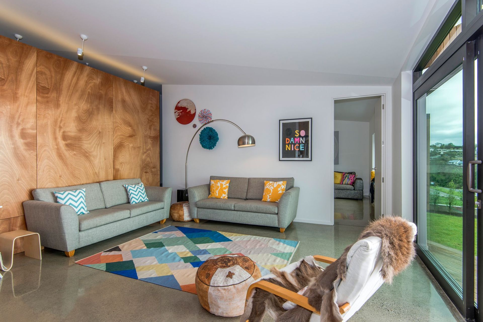 ArchiPro Project Summary - Award-winning contemporary family home in Christchurch, designed to maximize sweeping ocean views and create sheltered outdoor spaces, overcoming significant construction challenges to deliver a warm and inviting living environment.
