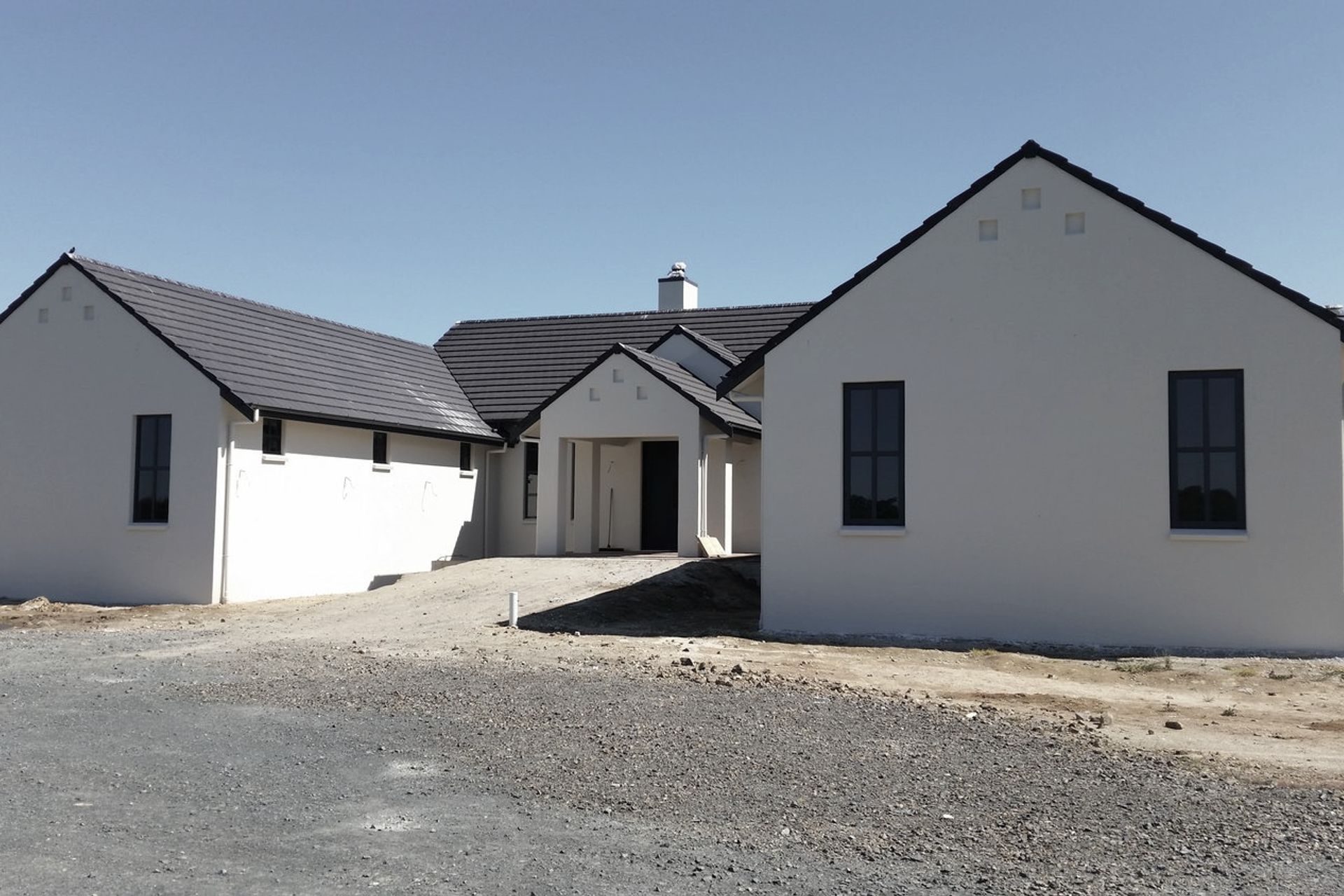 ArchiPro Project Summary - Elegant home on equestrian stud property, constructed from POROTHERM clay blocks, reflecting the charm of traditional cob-type Irish country homes, harmoniously integrated into its hedge-row setting.