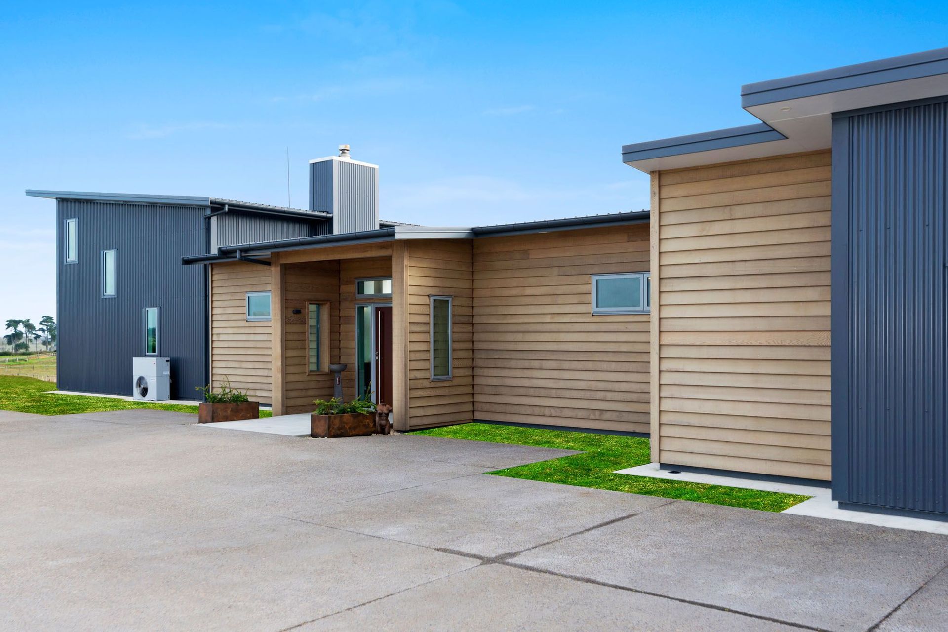 ArchiPro Project Summary - Eco-friendly residence featuring a fully insulated Maxraft floor slab, low-e glazing, solar hot water and PV solar power systems, hydronic underfloor heating, and a blend of western red cedar and colousteel cladding with polished concrete floors and blonded pine plywood ceilings.
