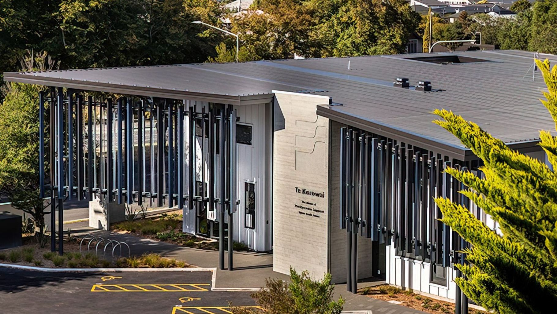 ArchiPro Project Summary - Te Korowai: A symbol of safety and strength, featuring unique architectural forms and a harmonious color palette, designed to meet complex installation needs while fostering a welcoming environment for staff and clients.
