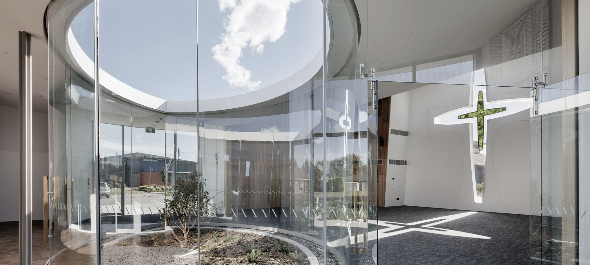ArchiPro Project Summary - A transformative spiritual centre for the Sisters of Mercy, blending traditional sacred space with bi-cultural teachings, featuring a Sanctuary Garden and a design inspired by the Ichthys symbol, located in Christchurch.