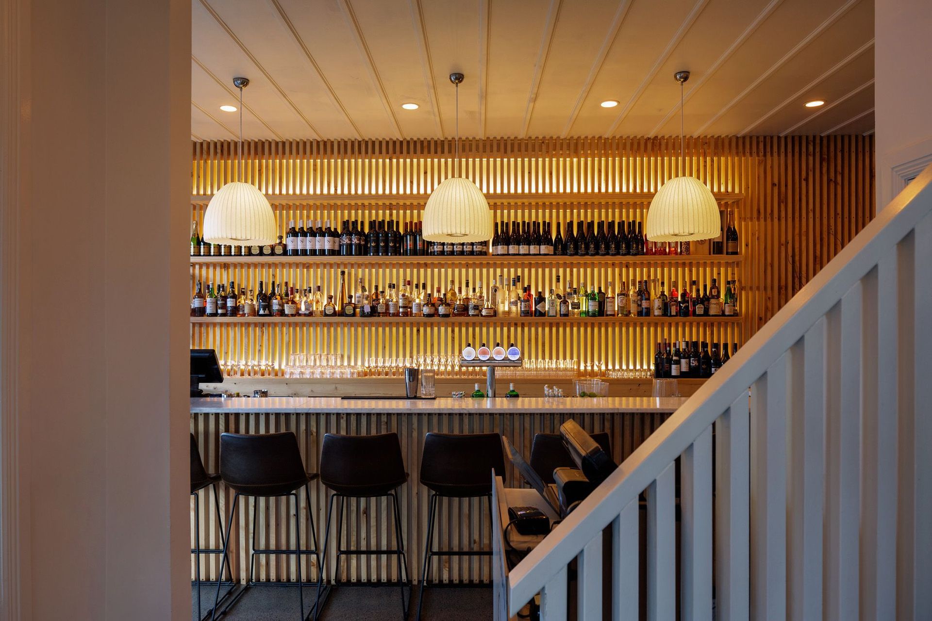 ArchiPro Project Summary - Revitalizing a historic Auckland landmark, Teddy’s Brasserie combines warmth and modern design with cedar batten panels, an inviting bar, and intimate seating, creating a spacious and elegant dining experience.