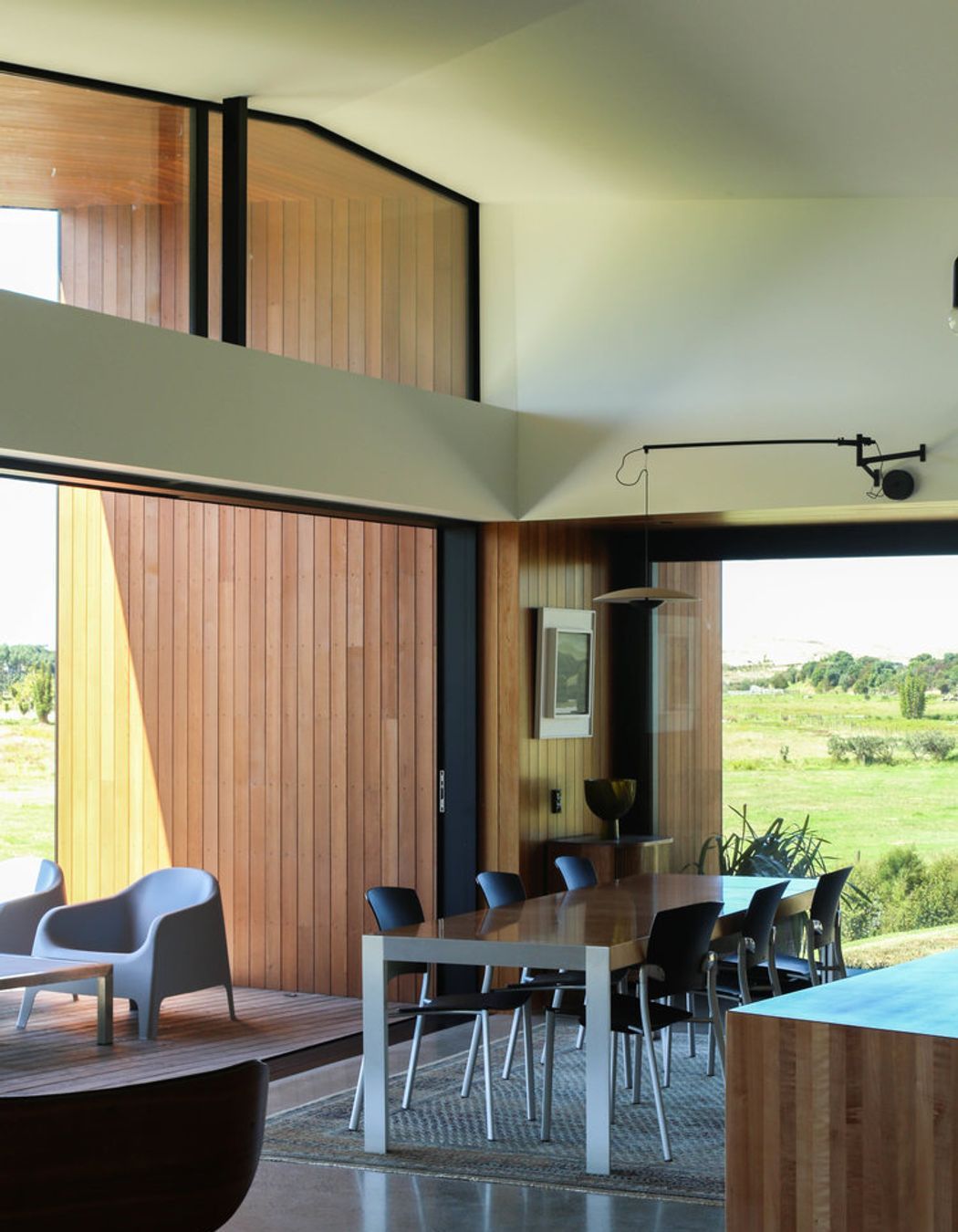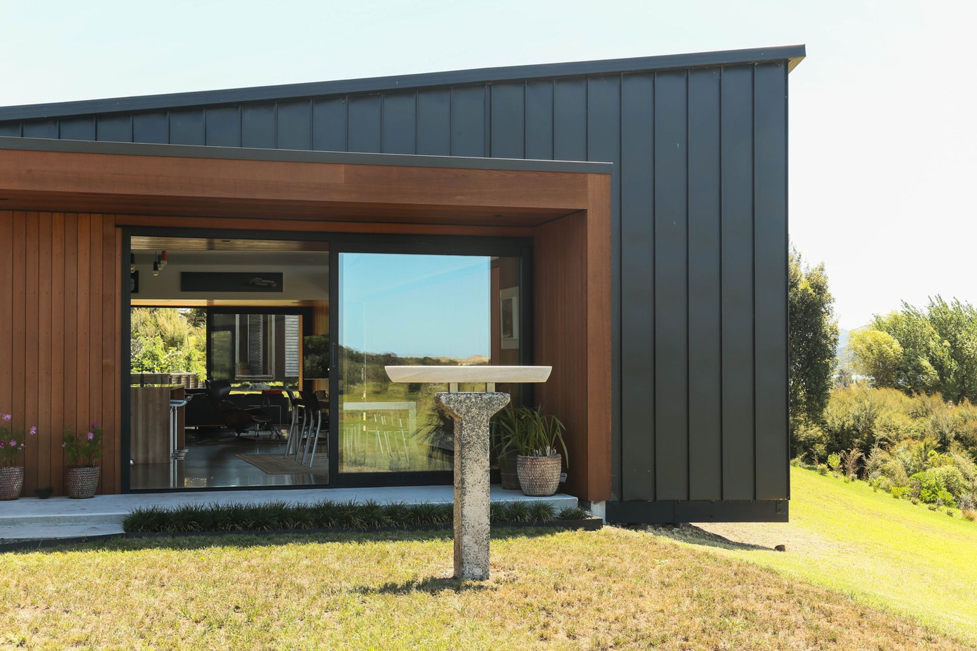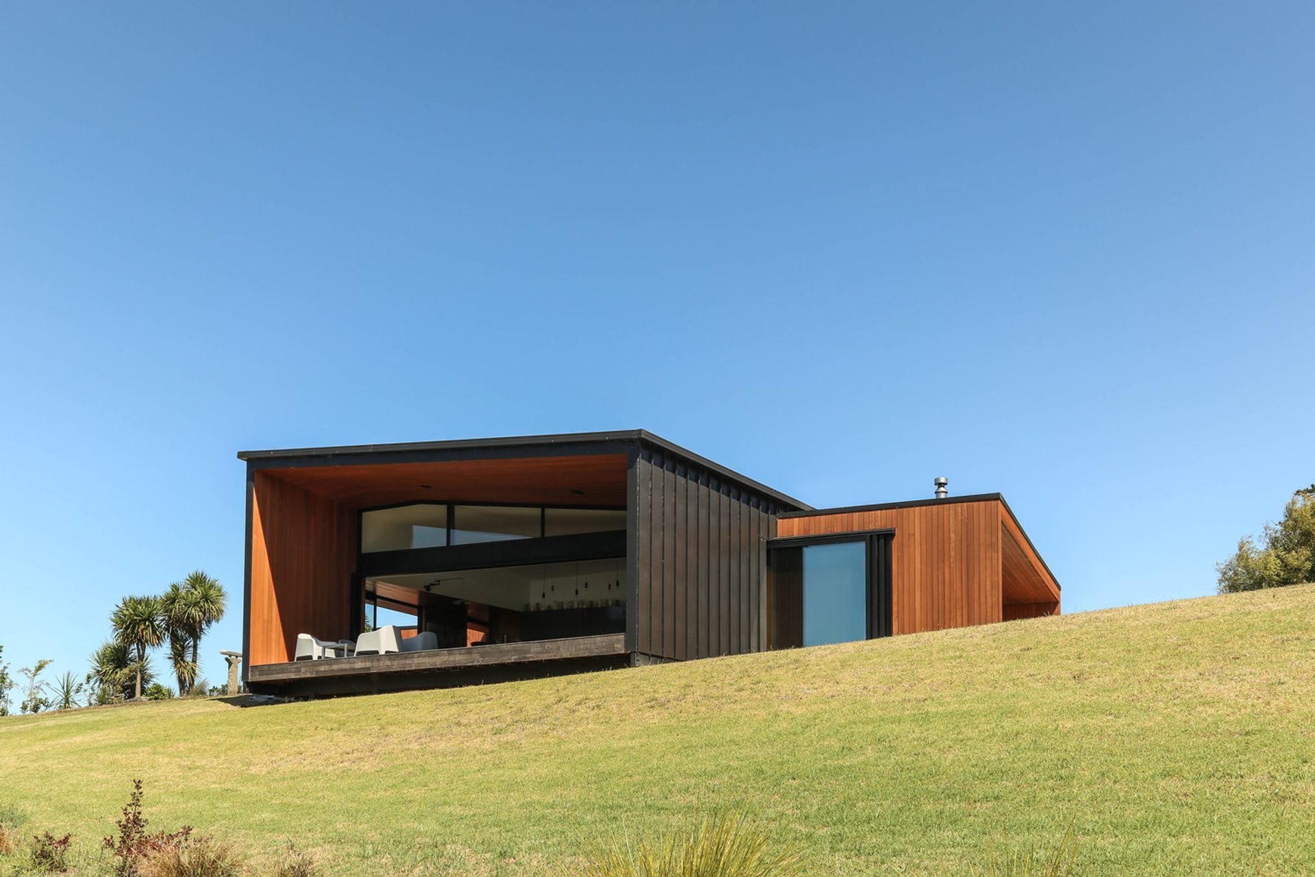 ArchiPro Project Summary - A light and airy coastal home in Mangawhai, featuring intersecting forms, durable materials, and expansive views, designed for both intimate living and larger gatherings.