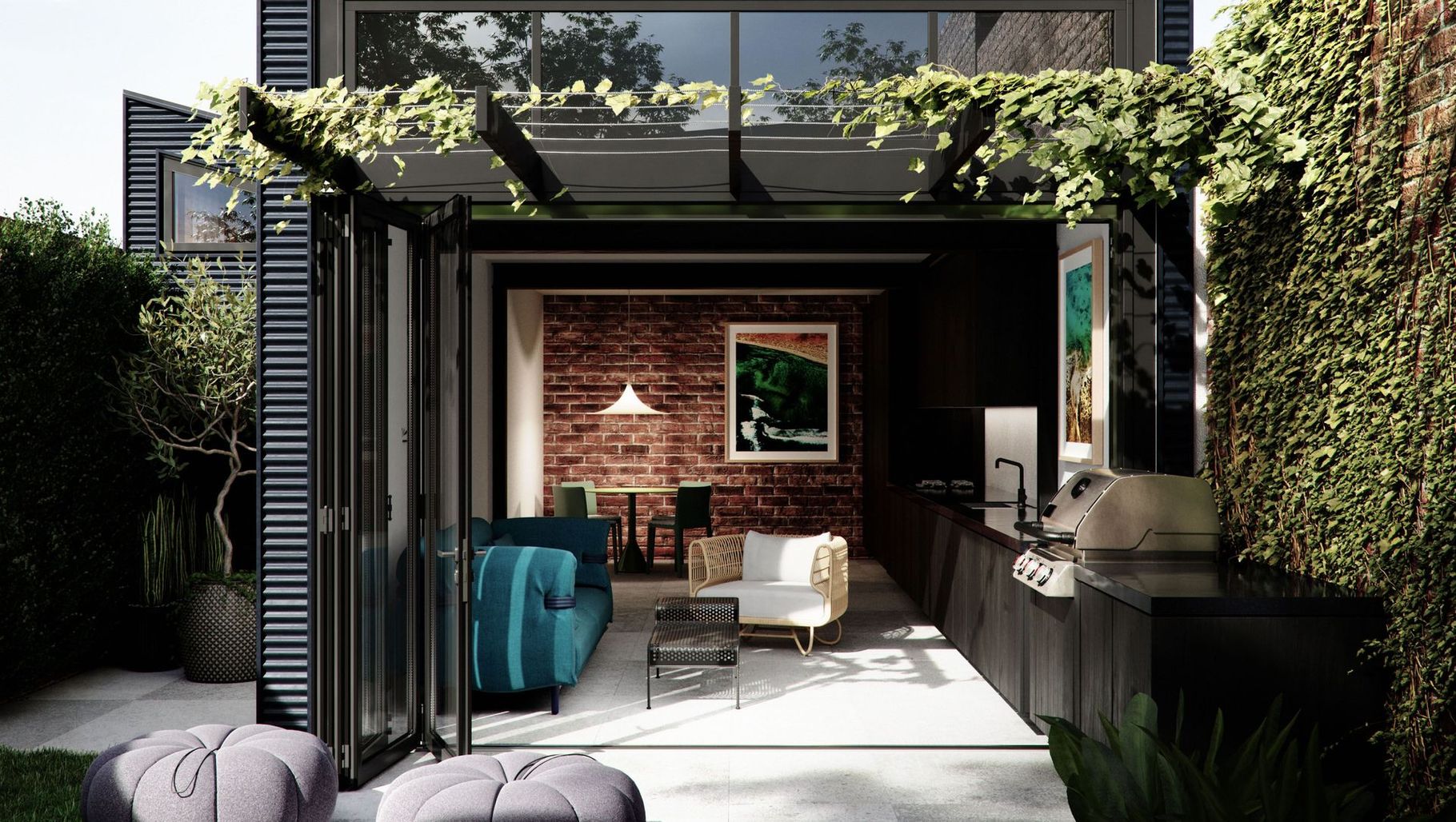 ArchiPro Project Summary - Revitalization of a North Melbourne terrace house with a new living area, kitchen, bathroom, and laundry, seamlessly connecting indoor and outdoor spaces for a young family.