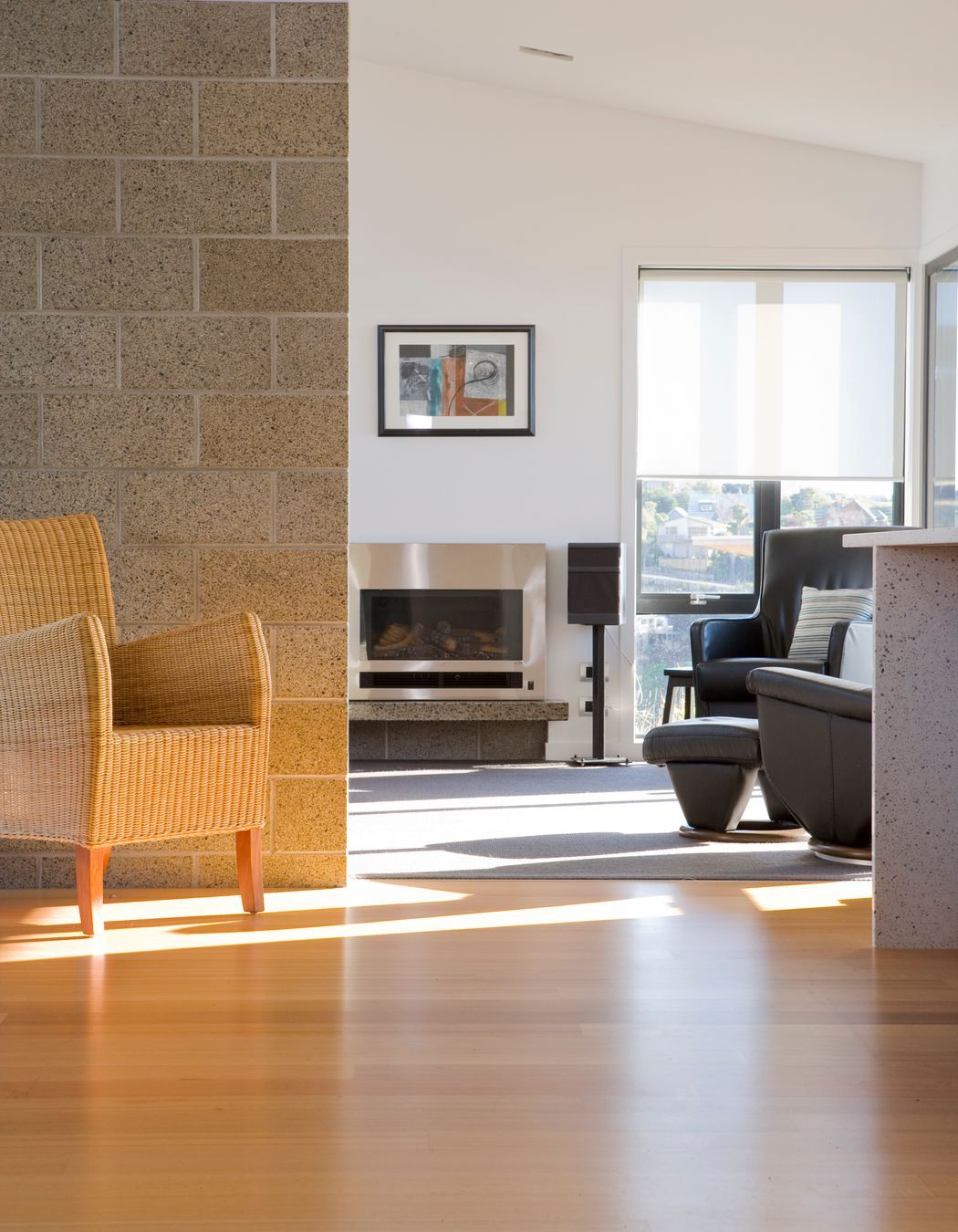 ArchiPro Project Summary - A thoughtfully designed single-storey home on a gently sloping ridge, featuring an L-shaped layout that maximizes views and natural light while incorporating passive solar principles and natural materials for a harmonious living experience.