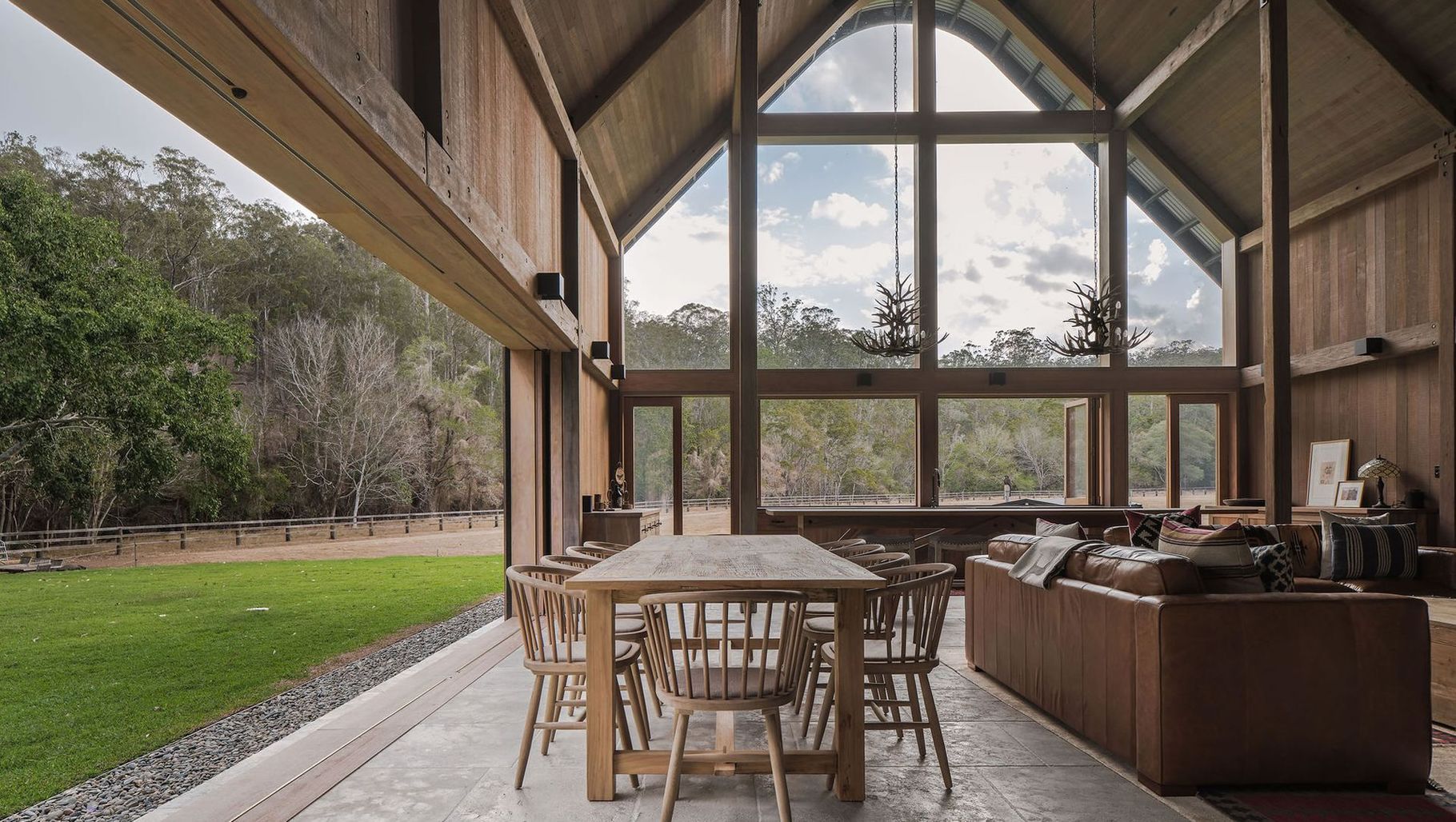 ArchiPro Project Summary - The Barn: A stunning farmhouse design that showcases the beauty of Australian hardwoods, featuring a weathered look with CUTEK® Extreme CD50 and Grey Mist Colourtone, harmonizing with the Queensland bushland setting.