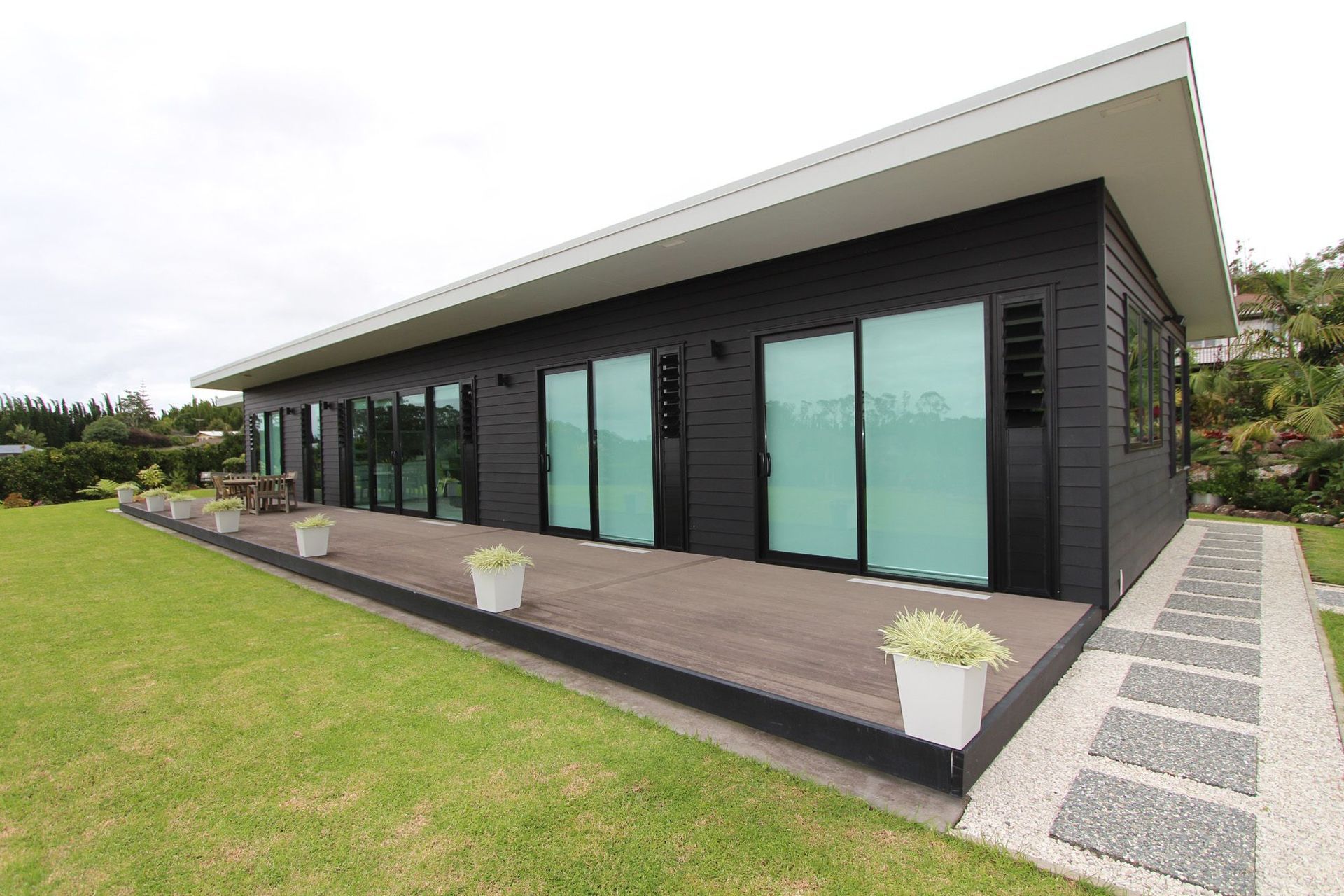 ArchiPro Project Summary - A sustainable and spacious home designed with passive solar principles, featuring Vantage Aluminium joinery, double glazed green tinted glazing, and thermal mass for energy efficiency.