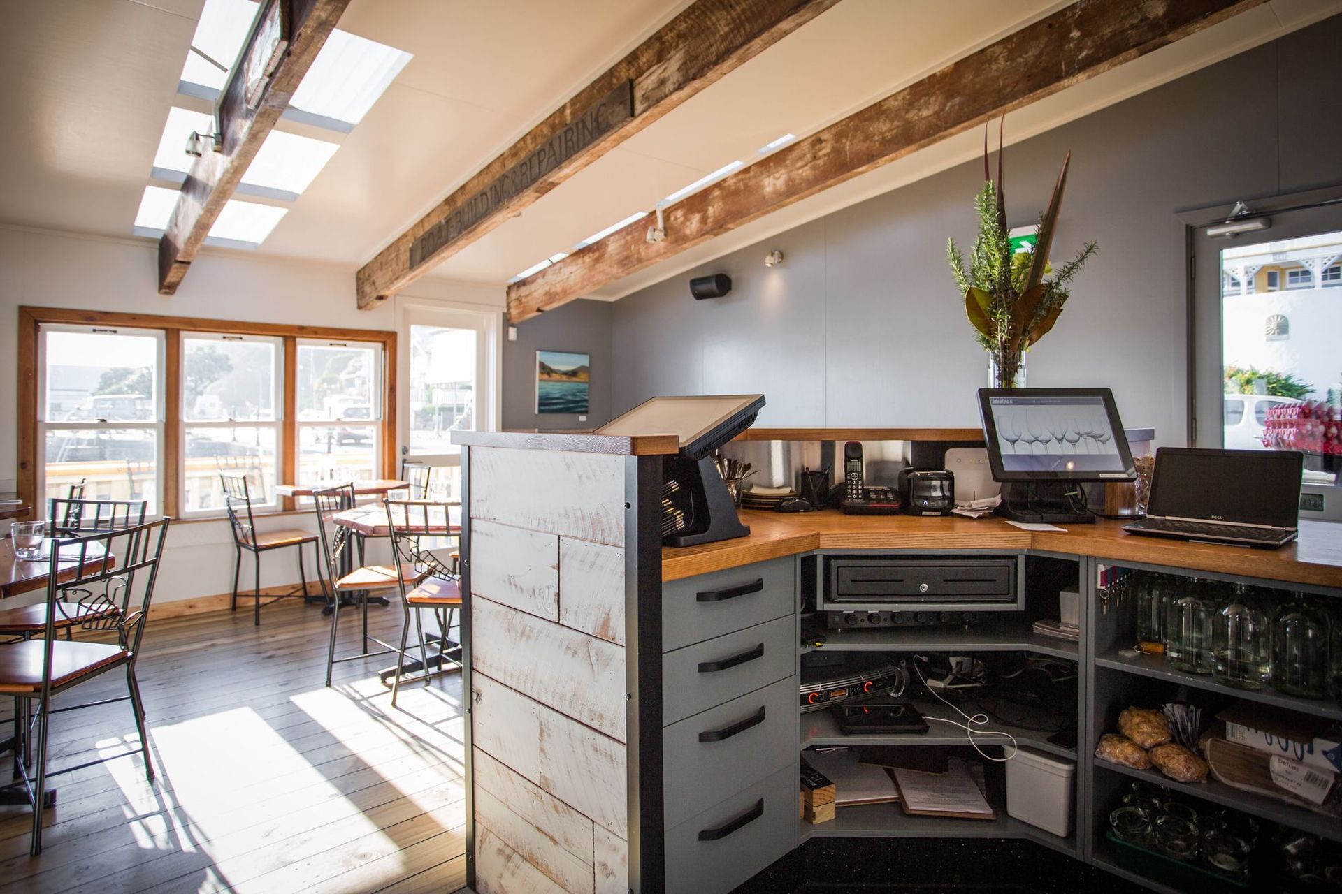 ArchiPro Project Summary - A modern refit of The Boat Shed Café in Nelson, completed in 2018, transforming a storm-damaged space into a vibrant and inviting restaurant that captures the essence of the picturesque coastline.