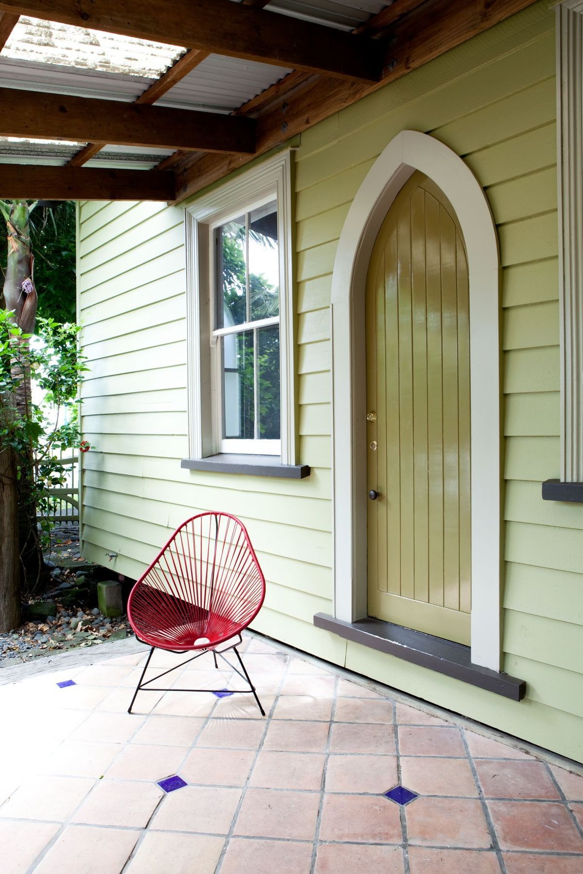 ArchiPro Project Summary - A beautifully restored Kauri Church, originally built between 1860-1880, transformed with a contemporary colour scheme inspired by its garden surroundings, featuring eight new paint colours and a custom 'Church Green' door, while maintaining its warm, inviting interior.