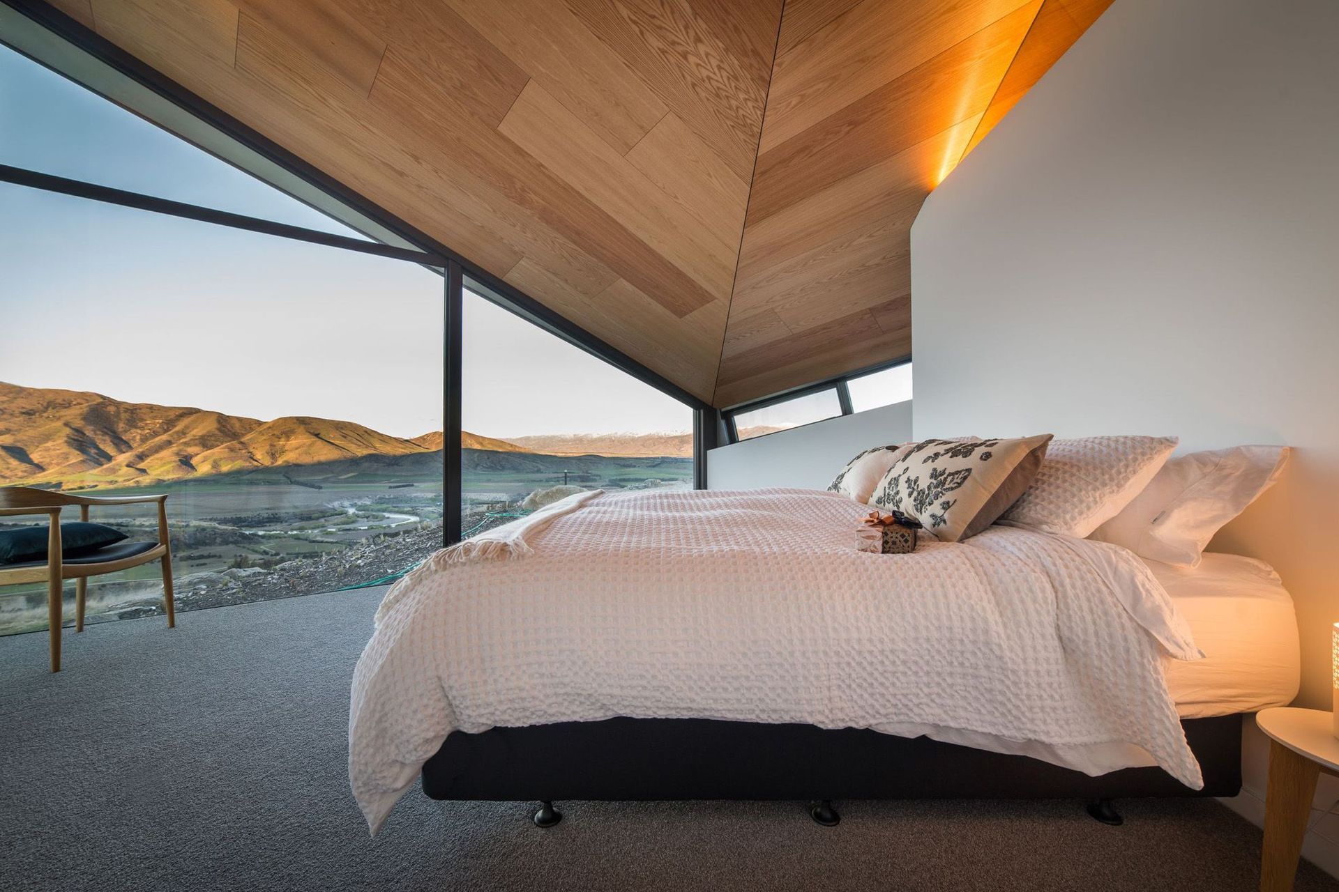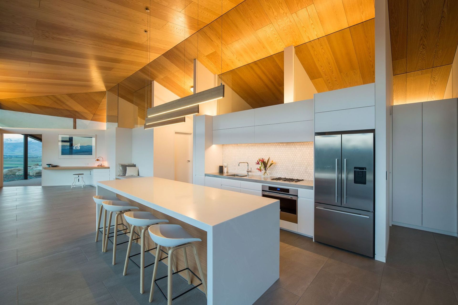 ArchiPro Project Summary - The Hawk House in Queensberry features a stunning Plymasters Classique Oak ceiling, designed in collaboration with architect James Stockwell and builder Nick Mizzi, showcasing unique angles and breathtaking views, while embracing natural materials for a warm, inviting atmosphere.