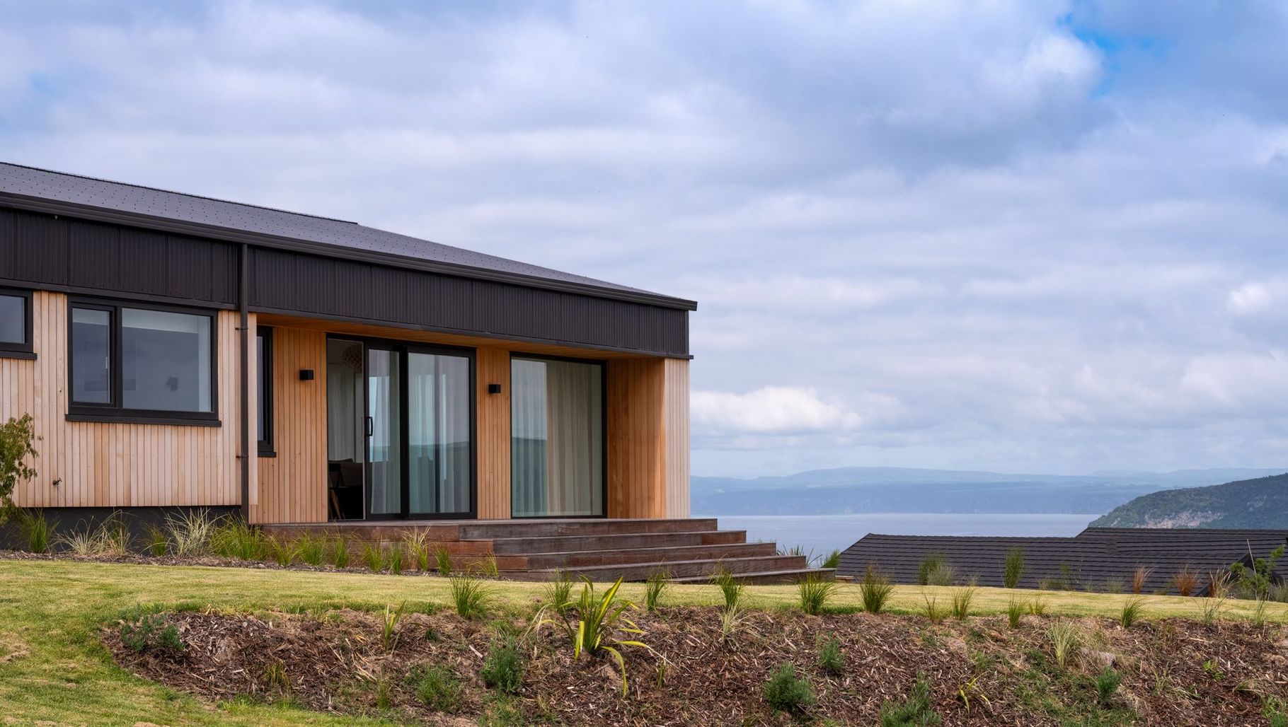 ArchiPro Project Summary - The Jetty House is a contemporary lakeside retreat completed in 2023, designed to harmonize with its natural surroundings while maximizing views over Lake Taupo, featuring innovative eHaus Euro standards for comfort and sustainability.