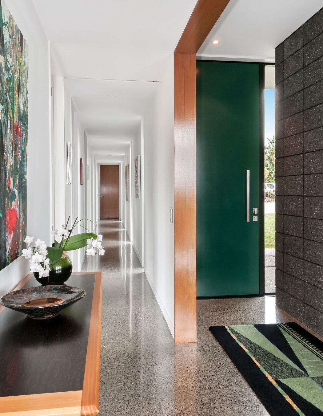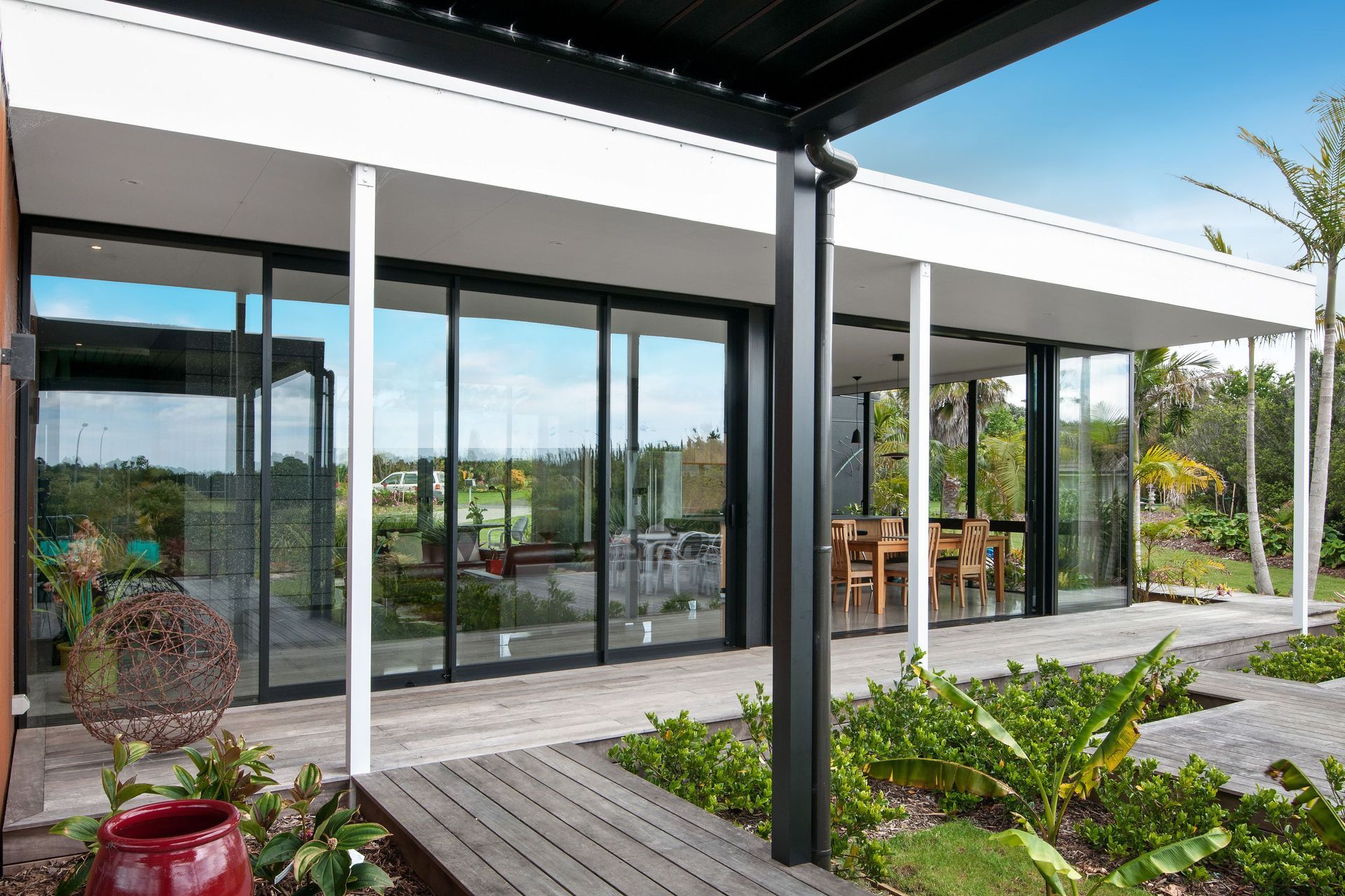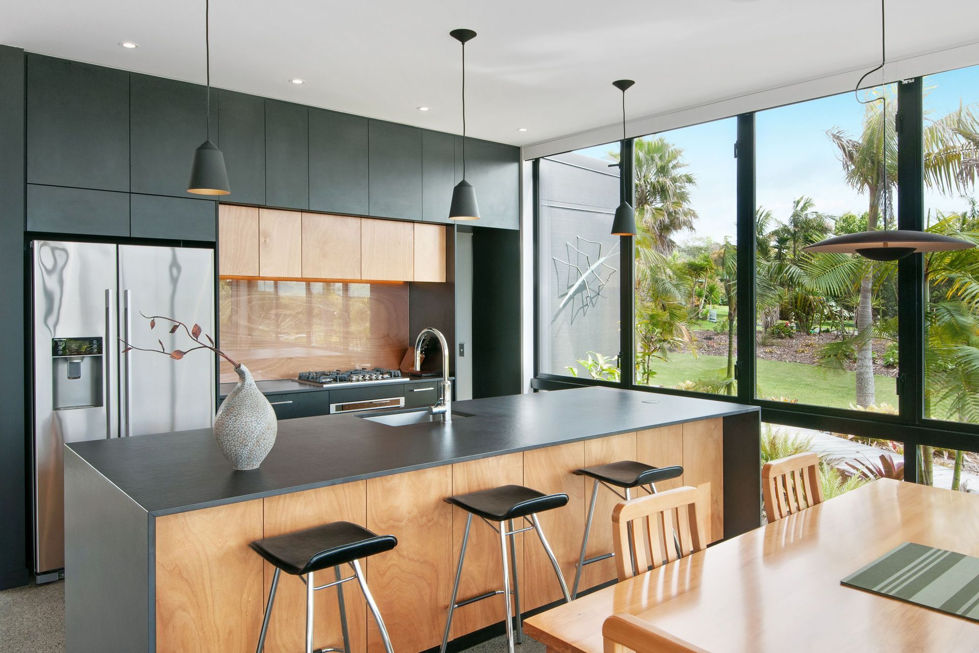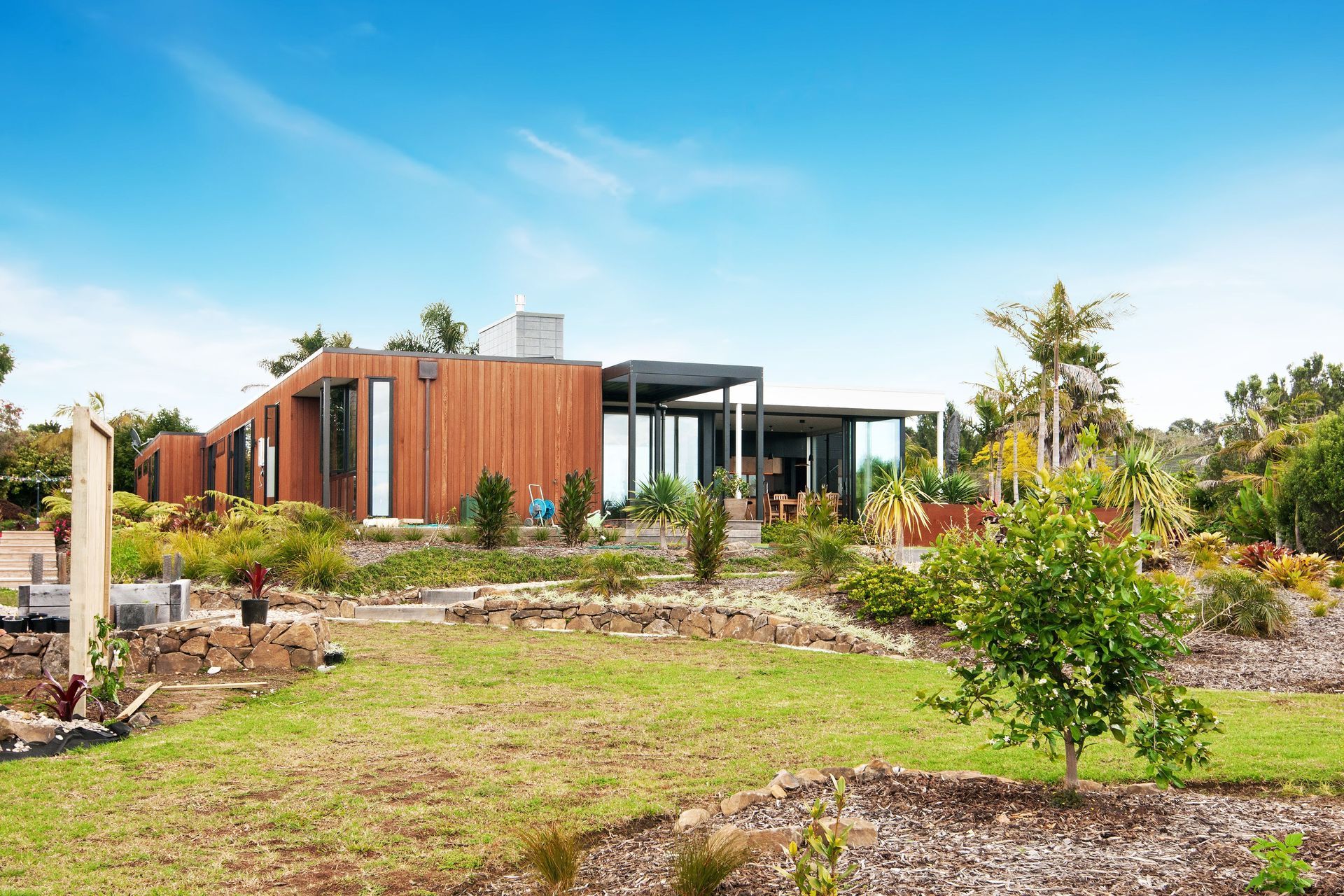 ArchiPro Project Summary - A stunning Kerikeri home inspired by Californian desert architecture, featuring strong horizontal lines, expansive glass walls, and a seamless connection to the outdoors, designed for a semi-retired couple seeking sun-filled living.