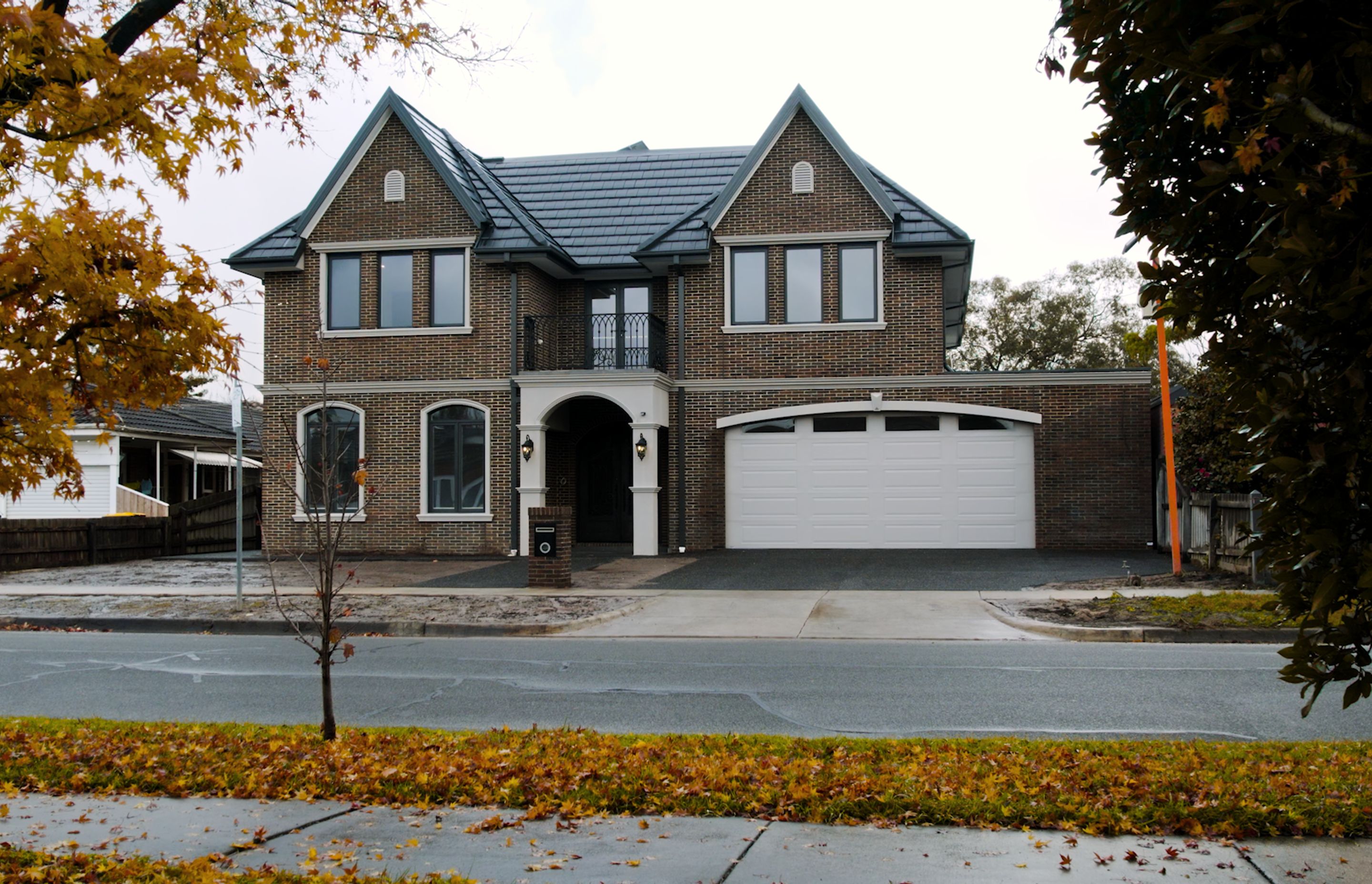 ArchiPro Project Summary - A stunning Provincial-style home featuring steep gables, arched windows, and elegant ironwork, complemented by custom doors, oak flooring, spacious entertaining areas, and a grand staircase adorned with a chandelier.