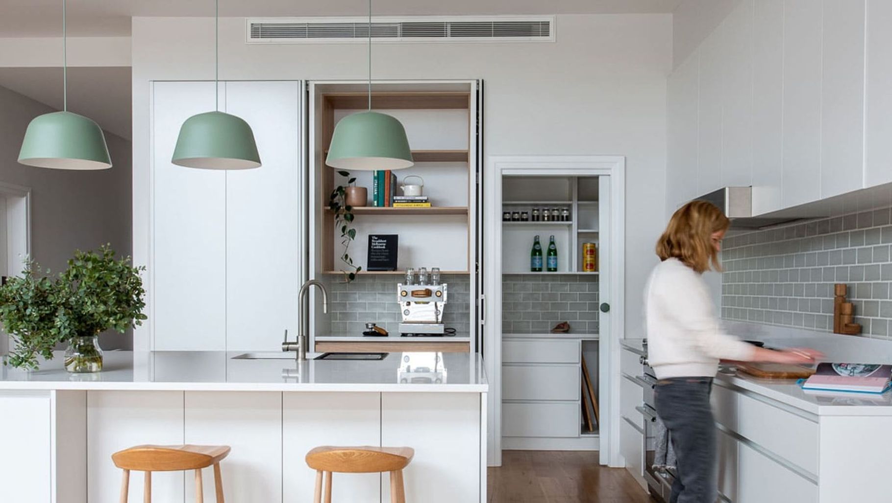 ArchiPro Project Summary - A contemporary wellness home in Brunswick, Melbourne, completed in 2019, featuring a serene color palette, smart storage solutions, and a thoughtfully designed kitchen that promotes health and order for a busy family.
