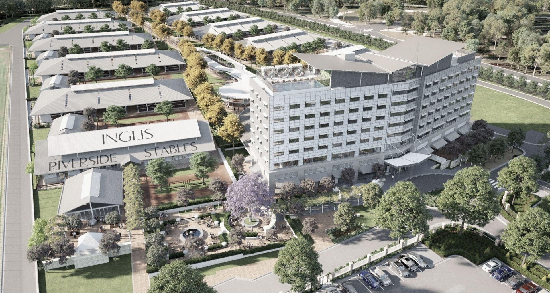 ArchiPro Project Summary - A unique facility featuring a 150-room hotel, 850 stables, and a versatile sales centre, designed to cater to elite racehorse owners and general guests alike, located at Warwick Farm racecourse.