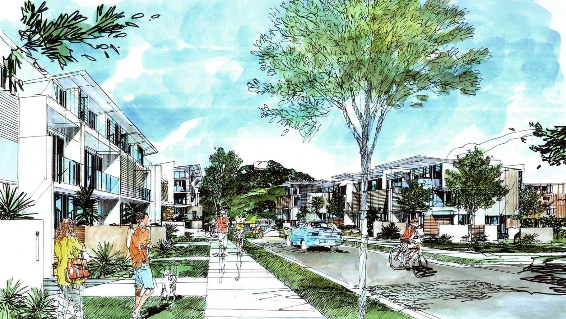 ArchiPro Project Summary - The Three Kings master plan revitalizes a disused quarry site in Auckland, creating a sustainable urban village with 1,200-1,500 dwellings, extensive open spaces, and a focus on community, heritage, and environmental restoration.