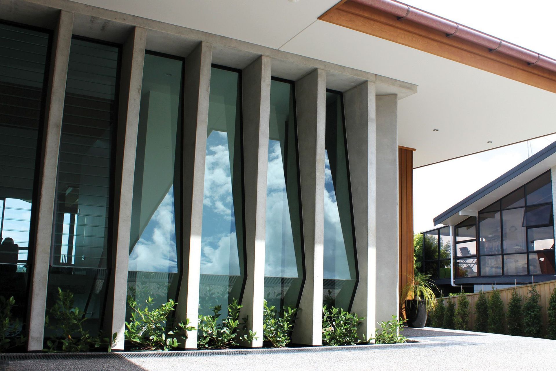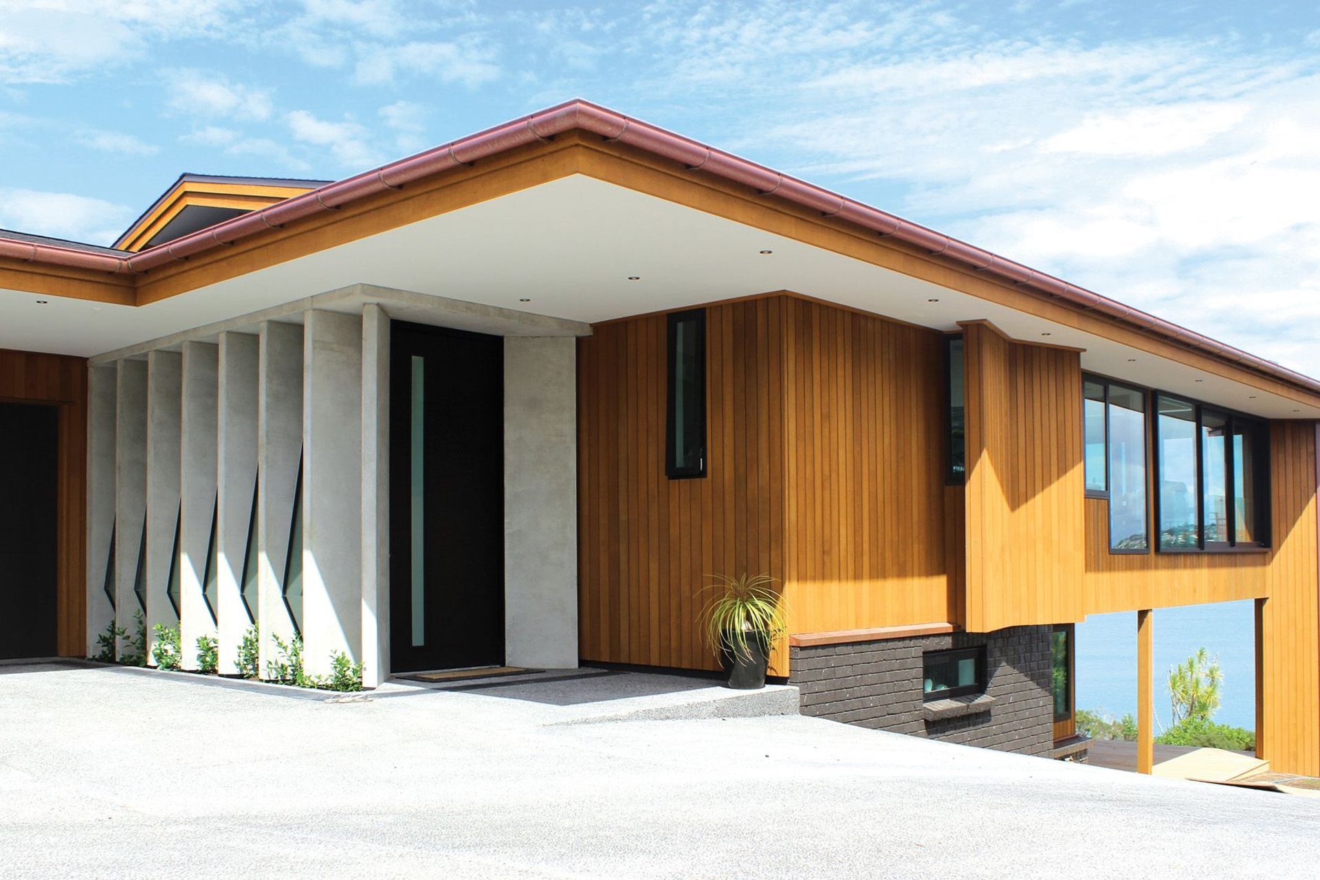 ArchiPro Project Summary - Comprehensive renovation of a two-level 1980s house featuring a new layout, striking V ceiling, precast concrete panels, and luxurious outdoor spaces, all while maximizing stunning sea views.