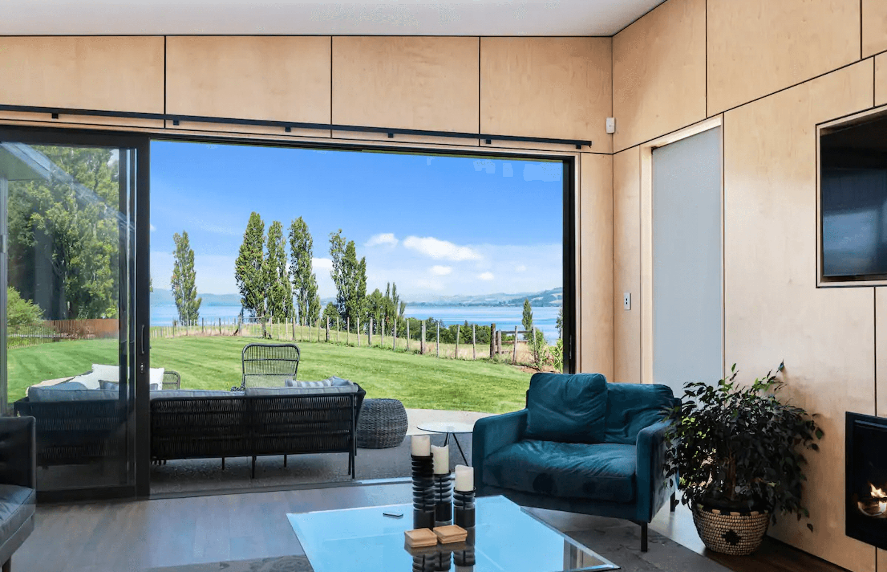 ArchiPro Project Summary - Toka Ridge Lodge features four interconnected guest dwellings, designed with Euro beech ply lined walls and full-length skylights, creating a warm and inviting atmosphere amidst beautifully landscaped paths.