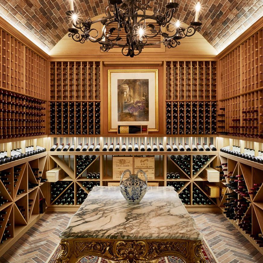 ArchiPro Project Summary - A classic wine cellar designed by Royale Construction, featuring Antico Casale brick tiles, cedar joinery, and exquisite finishes, completed in 2019, setting a new standard in luxury wine cellar design.