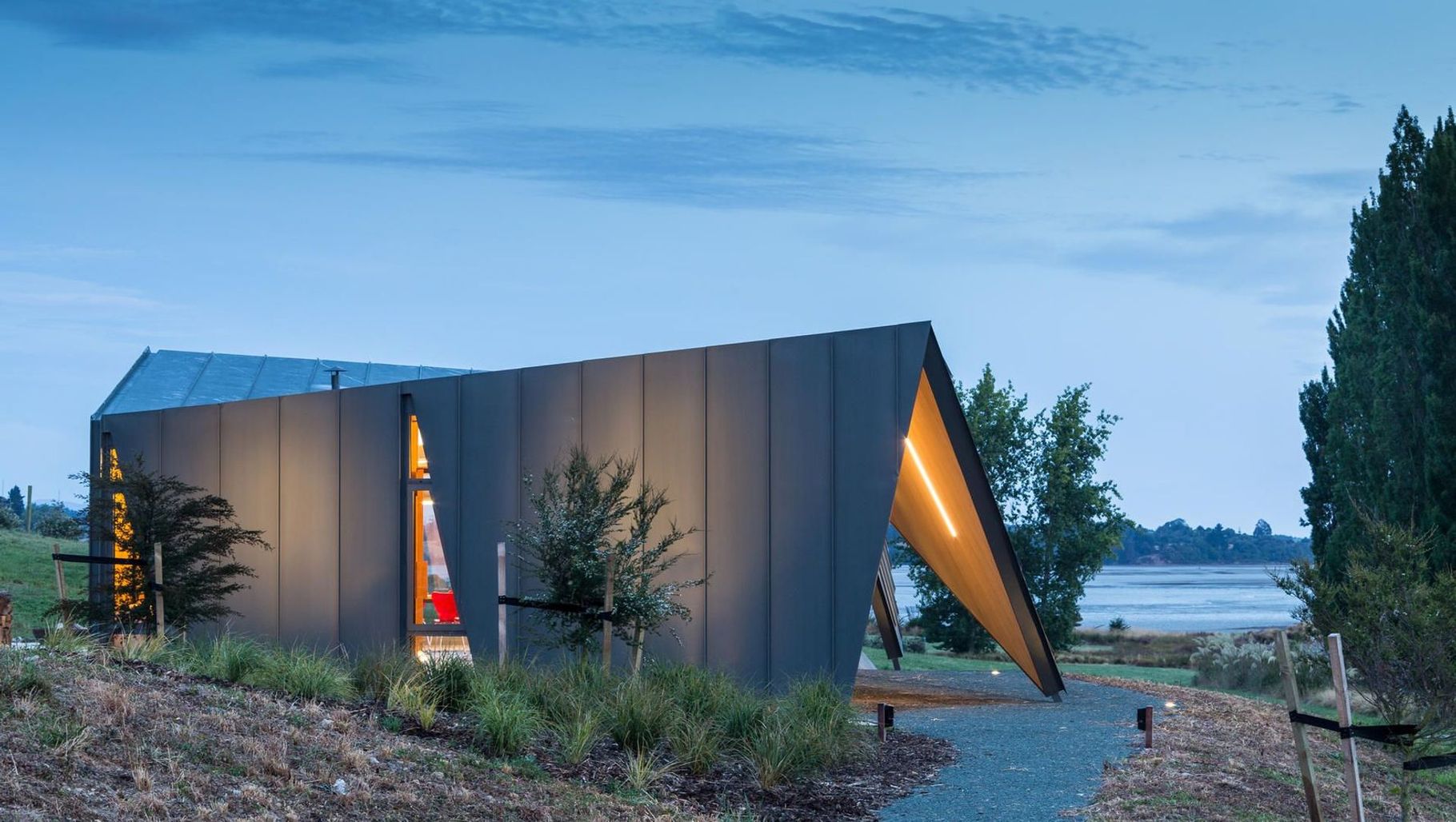 ArchiPro Project Summary - Torea Studio: A harmonious blend of study, meeting space, and guest accommodation, featuring innovative triangular CLT panels and outdoor terraces, inspired by the natural landscape and designed with precision technology.