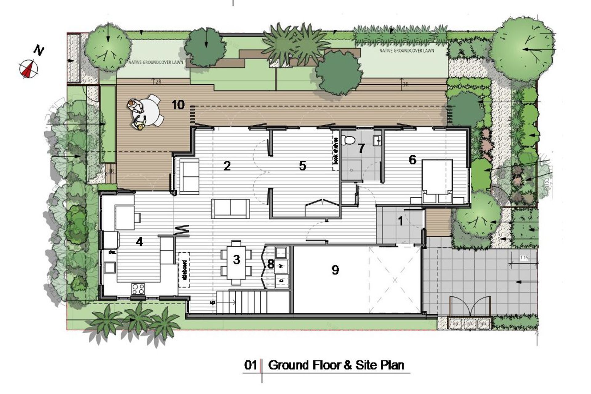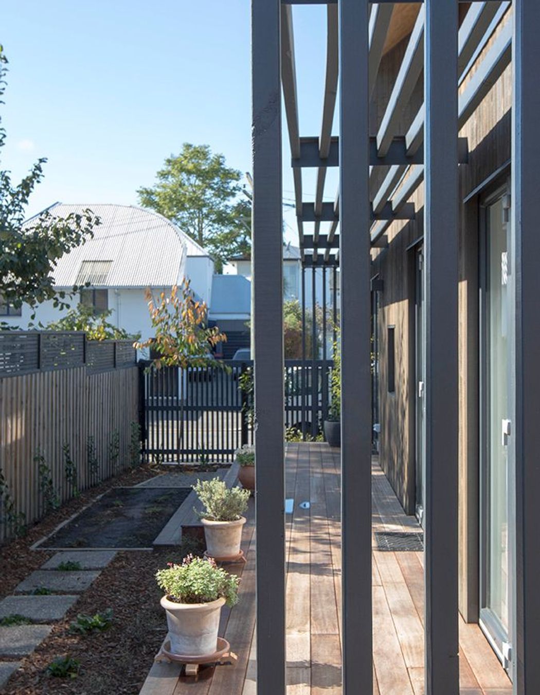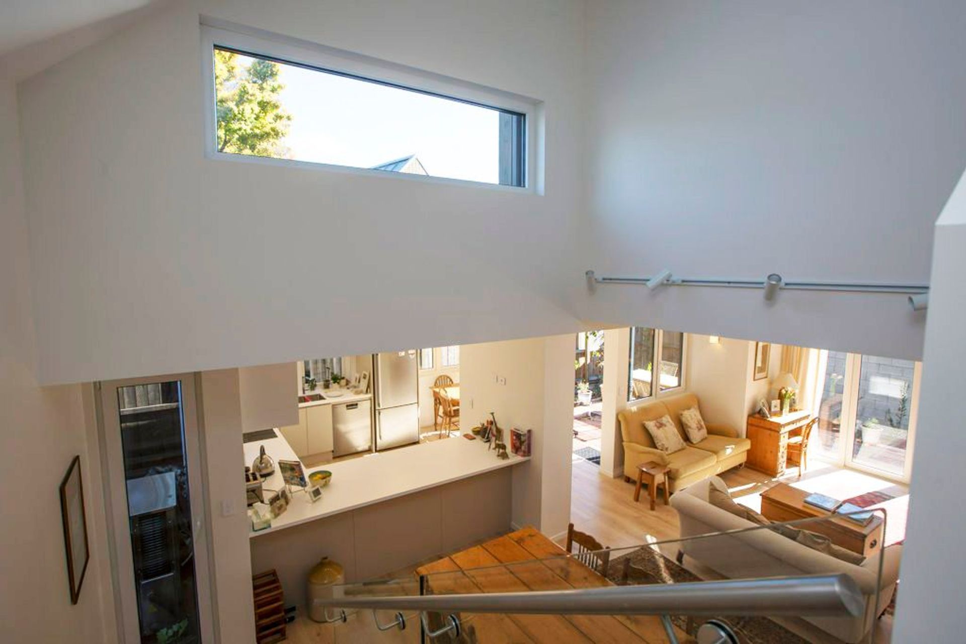 ArchiPro Project Summary - Award-winning energy-efficient home in Merivale, designed for optimal light and space on a compact site, featuring innovative prefabrication, regenerative design principles, and a strong connection to outdoor living.