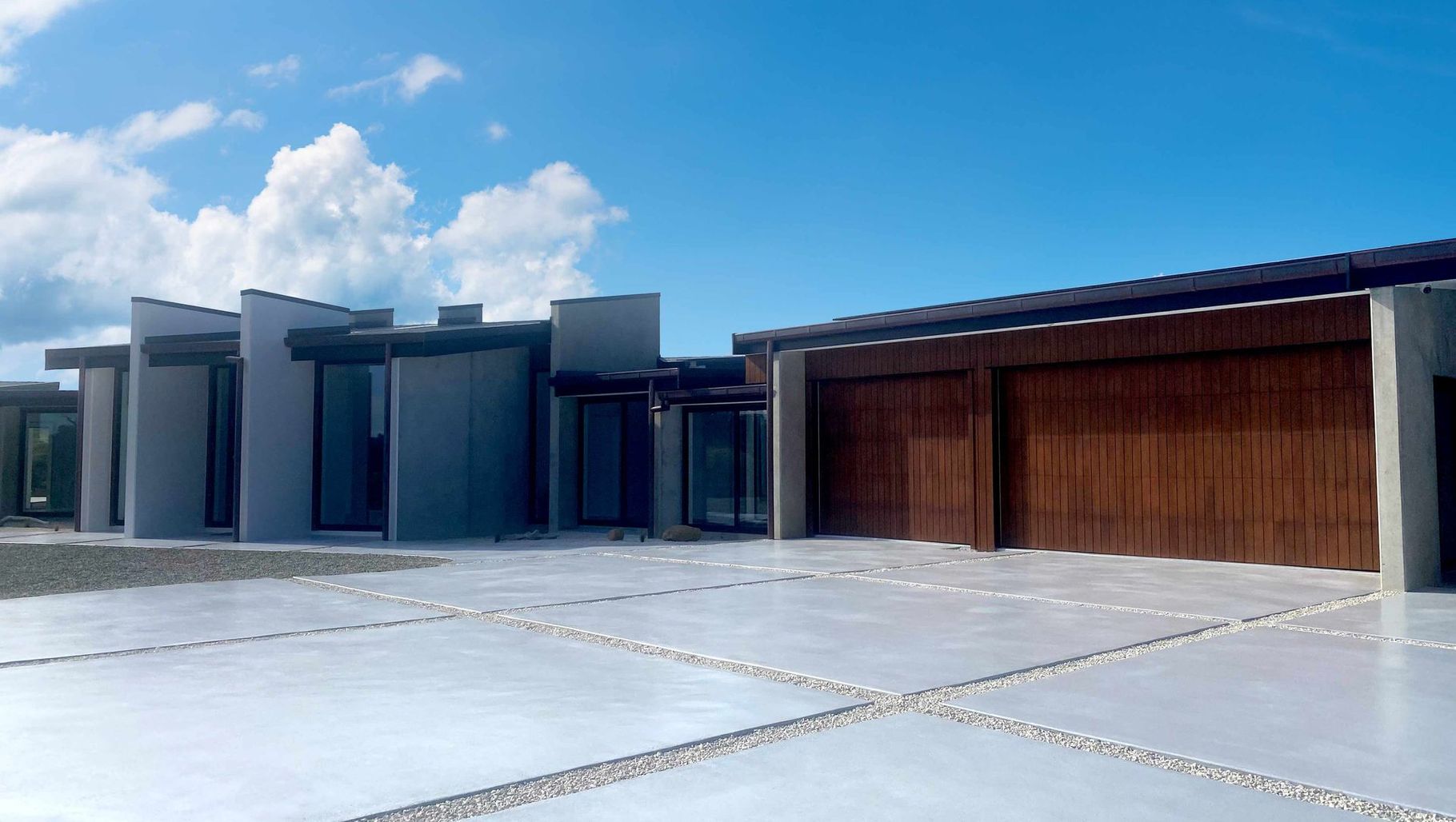 ArchiPro Project Summary - Custom Truwood® sectional garage door enhances the street appeal of a stunning residential home in Mahurangi East, New Zealand.
