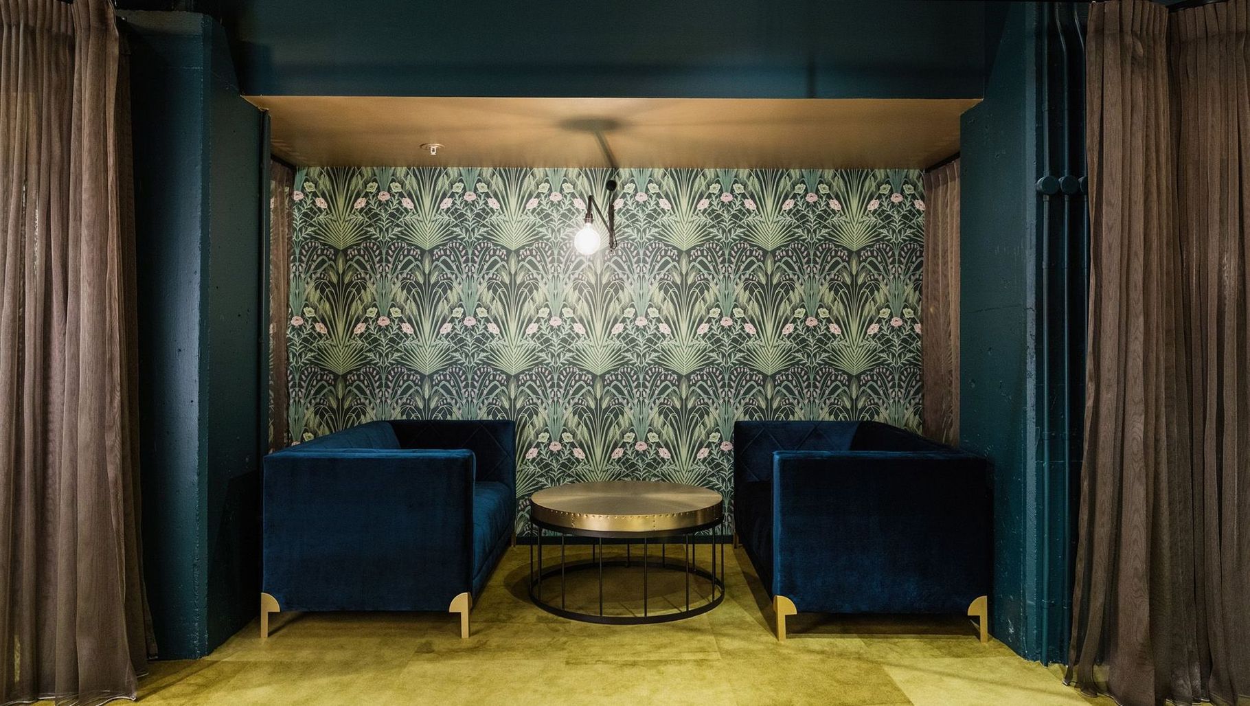 ArchiPro Project Summary - TSB Showplace Theatre Royal Lounge: A vibrant underground space featuring a bold color palette, eclectic decor, and an inviting ambiance, designed to enhance the experience for socialites and theatre-goers alike.