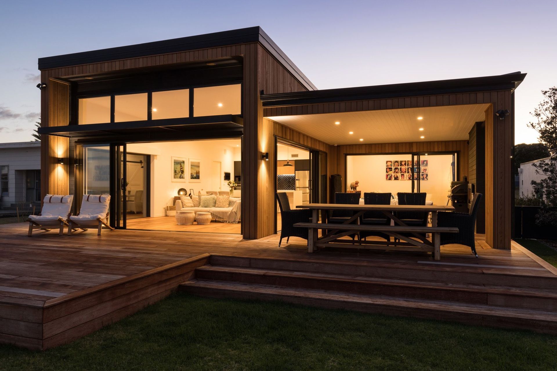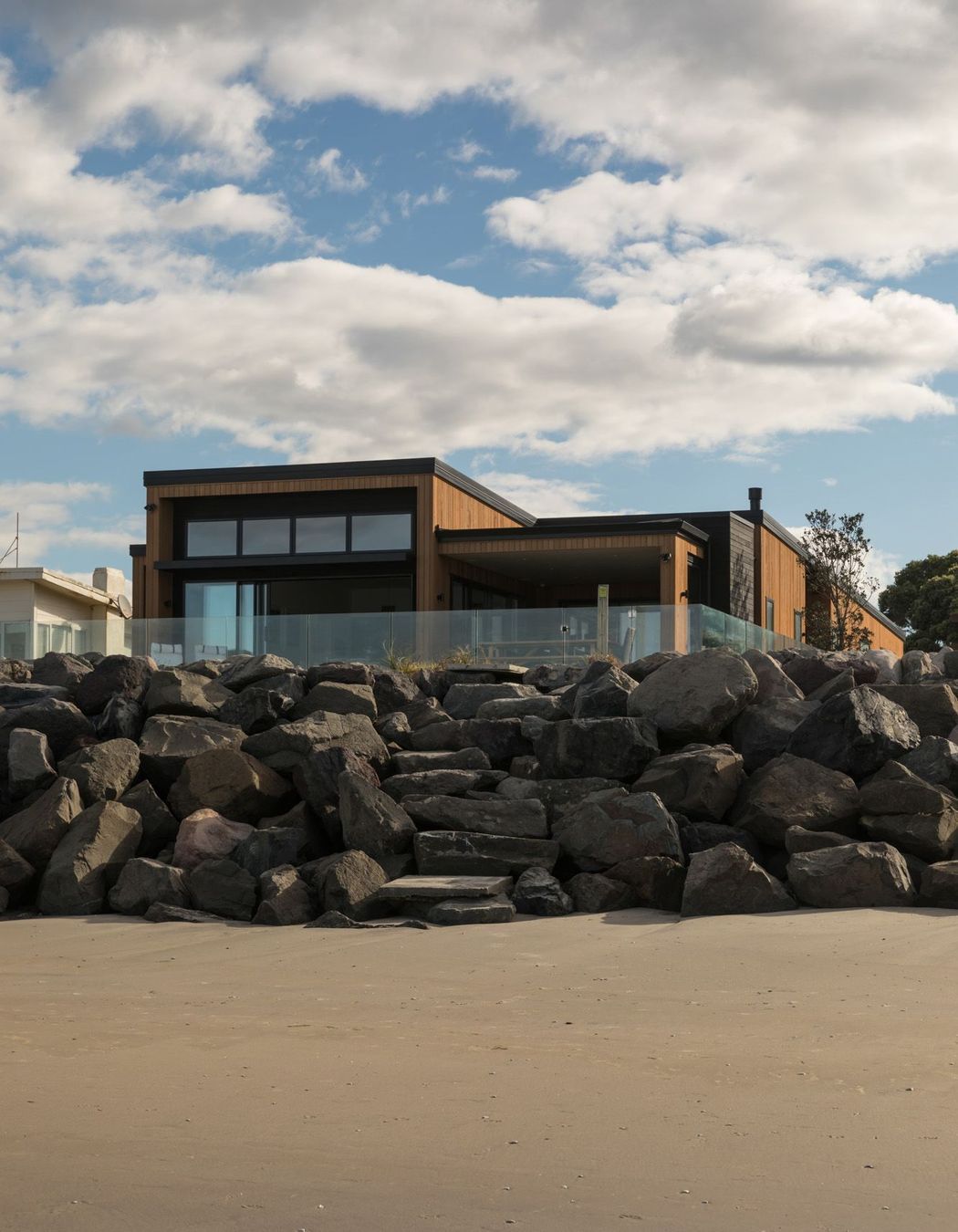 ArchiPro Project Summary - Luxurious beachfront family home at Waihi Beach, designed to embrace coastal living with stunning views of Tūhua/Mayor Island, featuring robust construction, seamless indoor-outdoor flow, and versatile entertaining spaces.