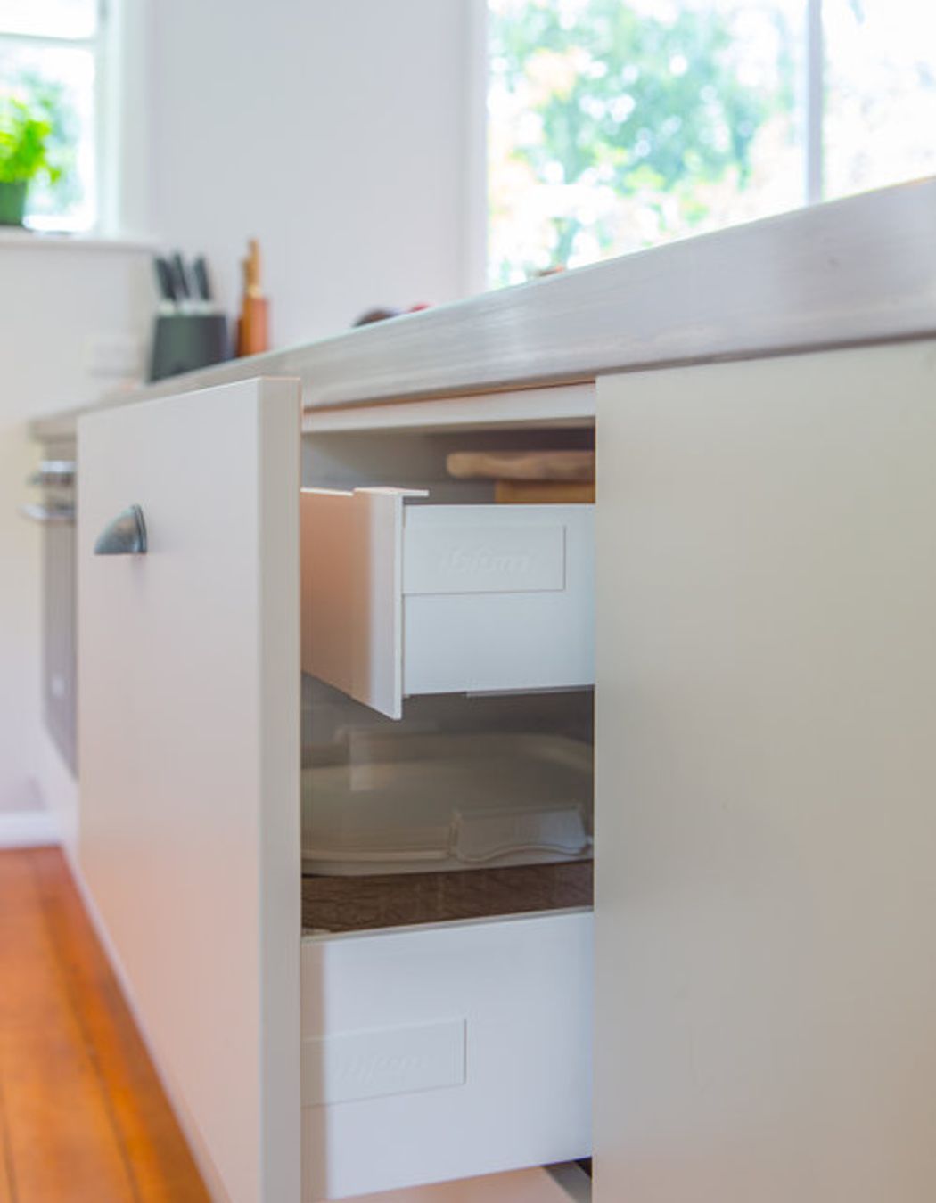 ArchiPro Project Summary - A transformed 1970's kitchen featuring an open layout that enhances natural light, complemented by a 3.5m kitchen peninsula designed for cooking, storage, and entertainment.