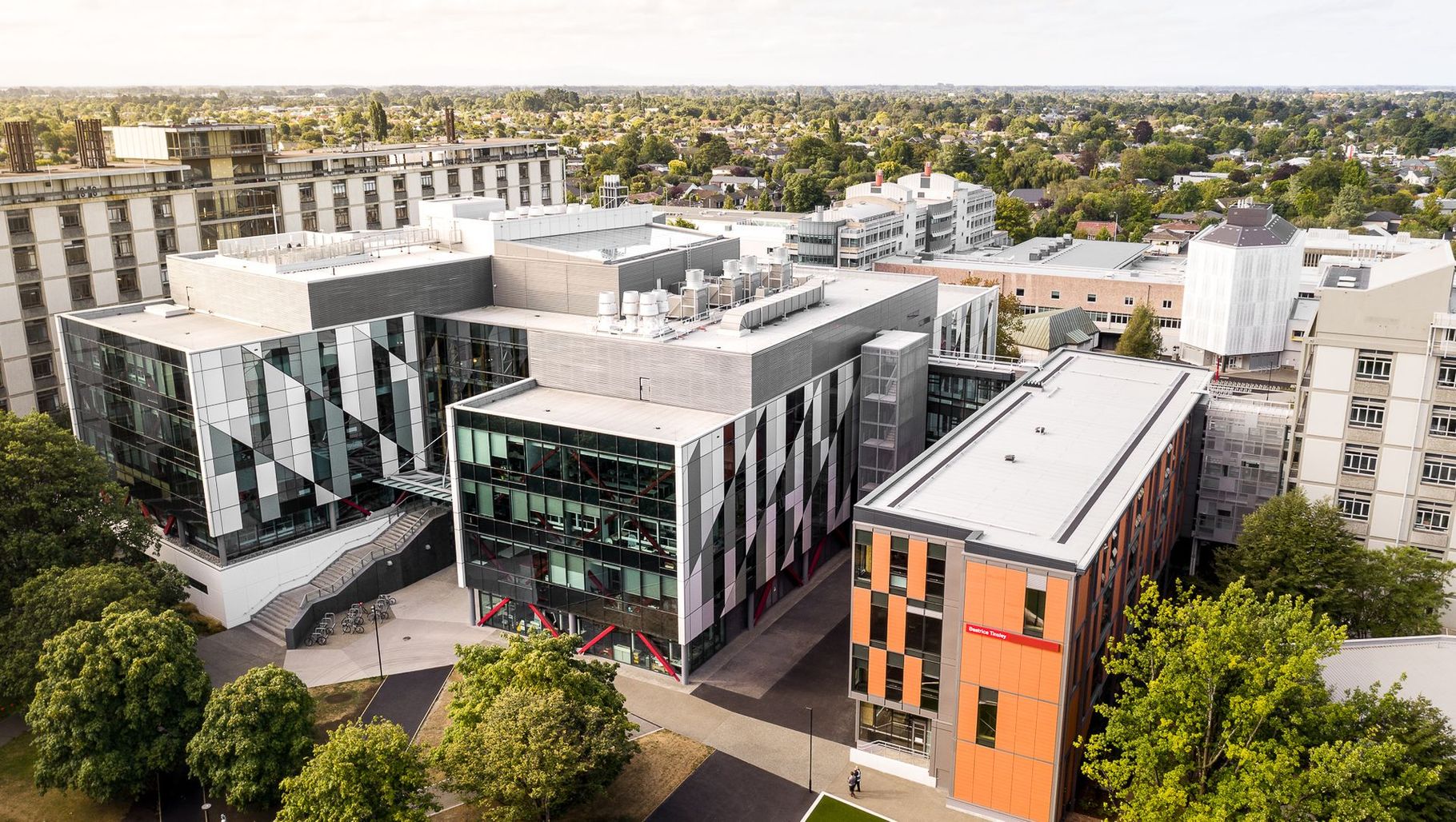 ArchiPro Project Summary - The University of Canterbury's Rutherford Regional Science and Innovation Centre (RRSIC) features state-of-the-art facilities for multiple science disciplines, showcasing innovative design and sustainability through the Ernest Rutherford and Beatrice Tinsley buildings.
