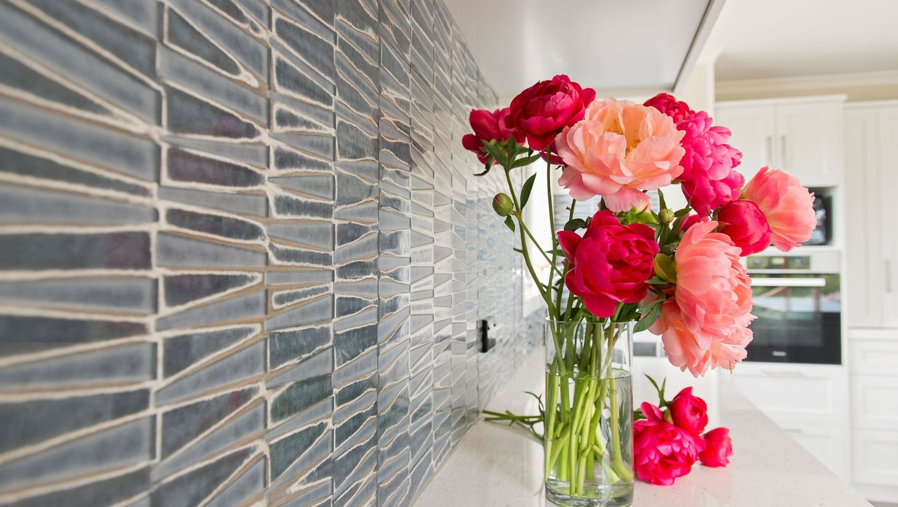 ArchiPro Project Summary - Refurbished farmhouse featuring vibrant Bluebellgray fabrics and stunning feature tiles, designed by Paterson Joinery, showcasing a harmonious blend of color and functionality in the kitchen and lounge.