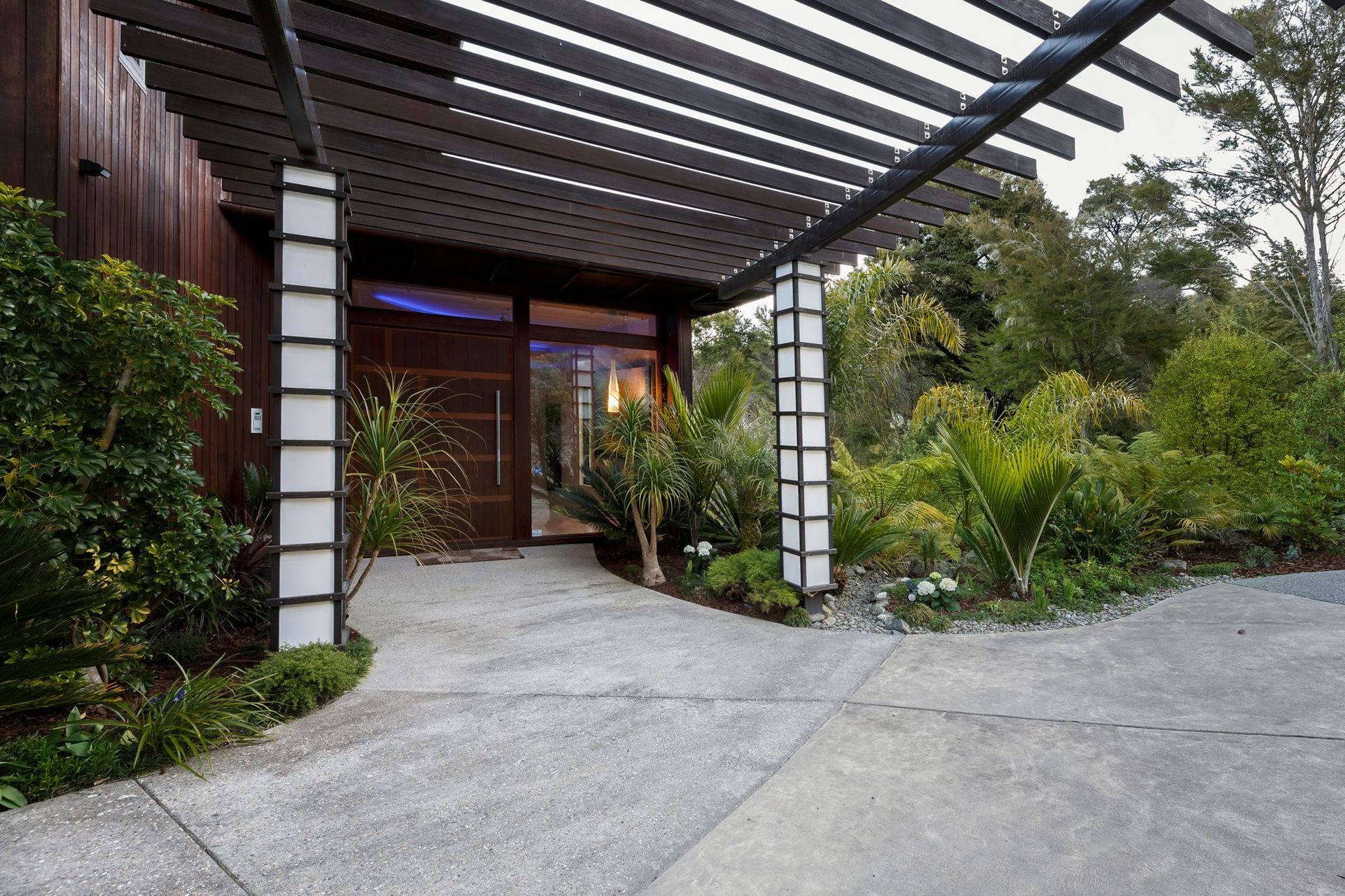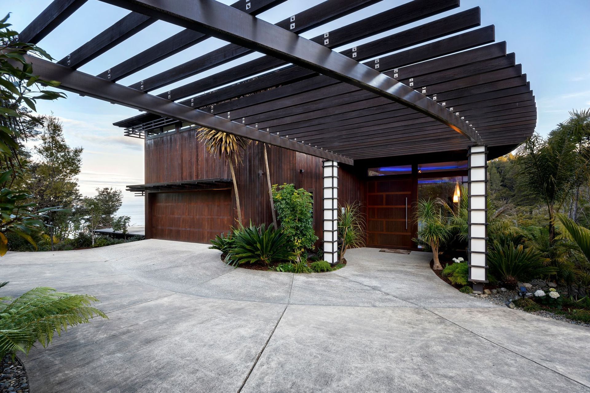 ArchiPro Project Summary - Venture Cove is an eco hotel that combines Japanese architecture with modern design, featuring sustainable landscaping and thoughtful lighting.