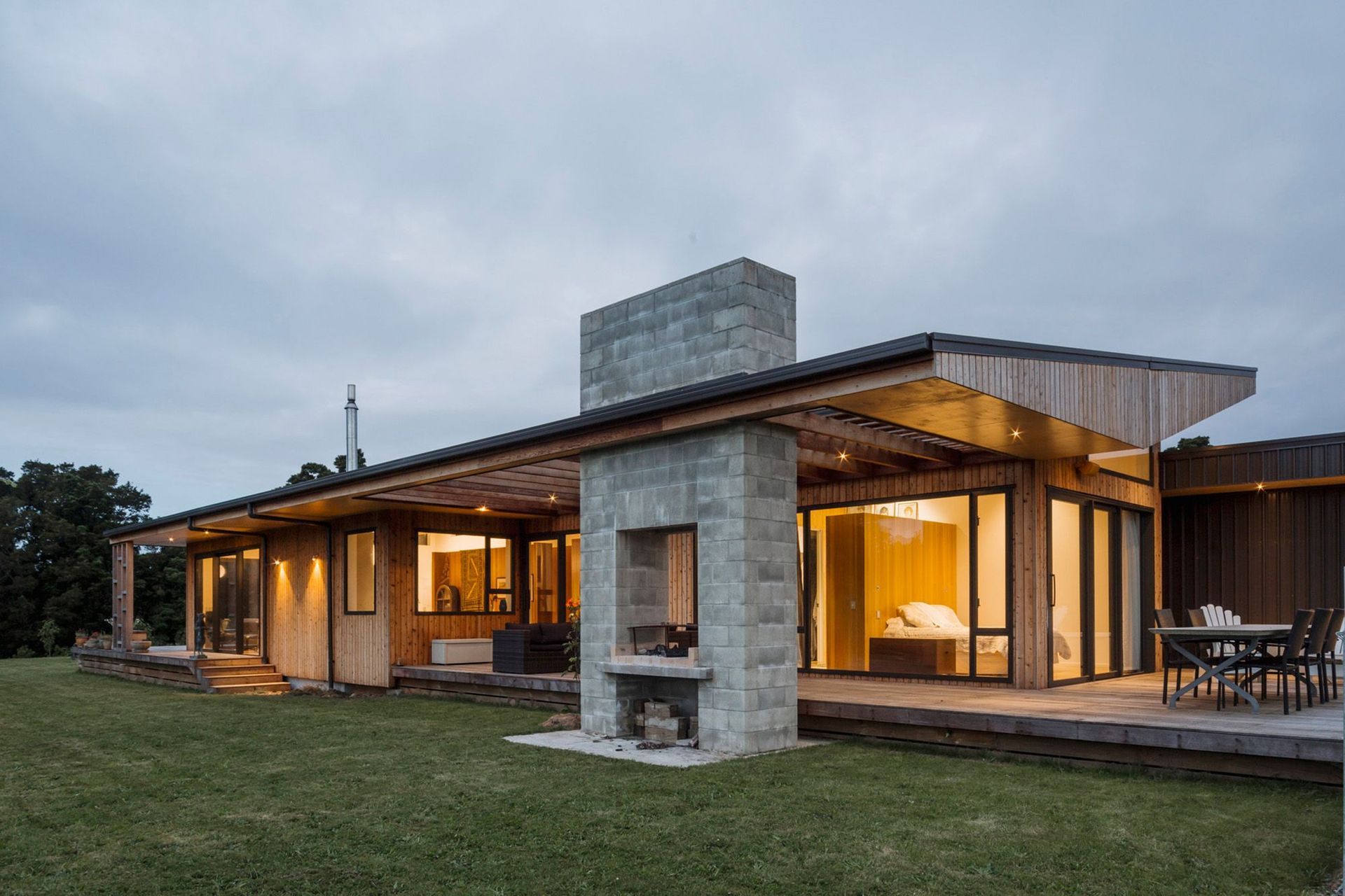 ArchiPro Project Summary - A versatile new home on a family farm, designed for comfort and flexibility, featuring expansive glazing, a light inverted truss roof, and a connection to the landscape through covered and open spaces.