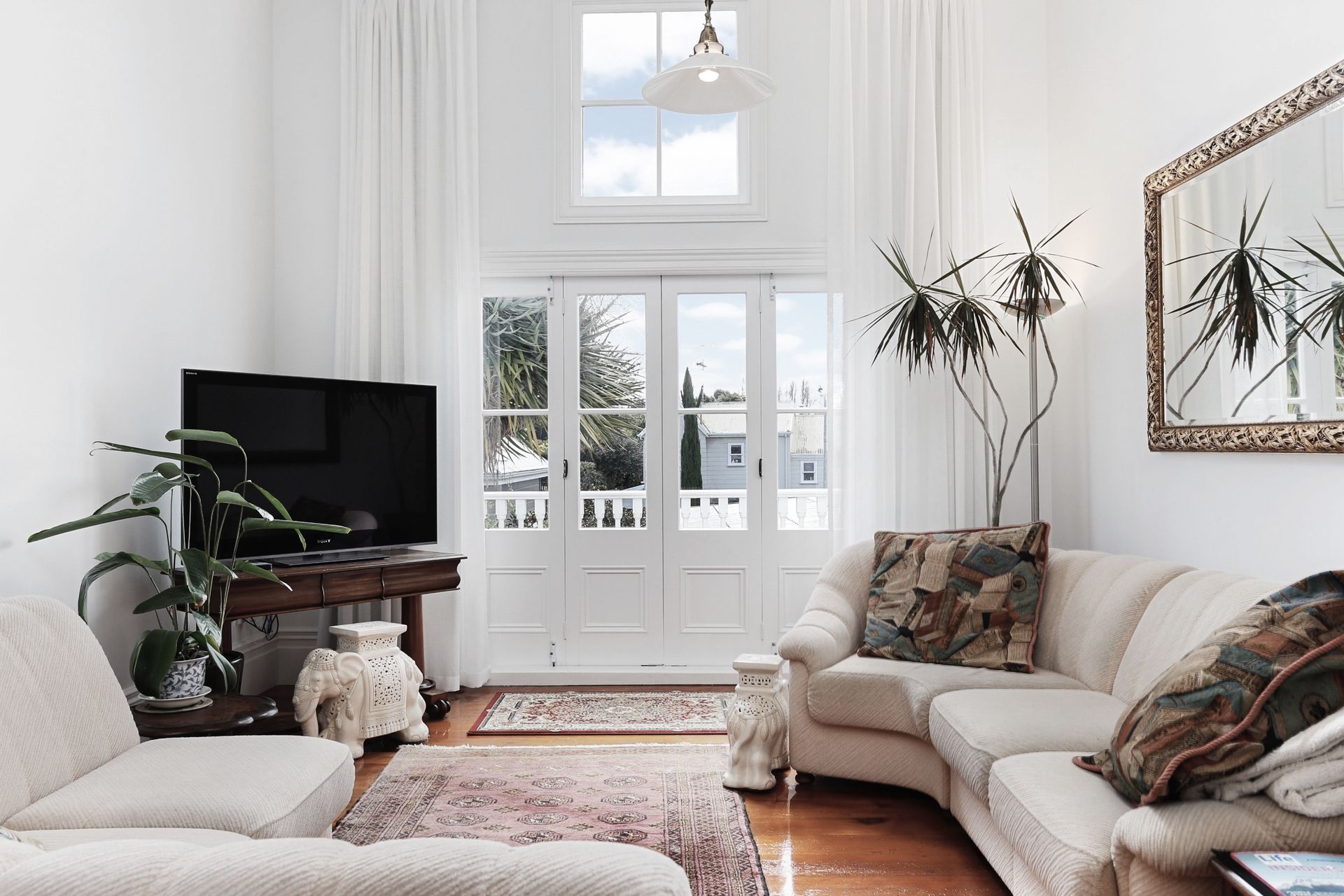 Check out those incredible high ceilings! Final touches done in the living area.