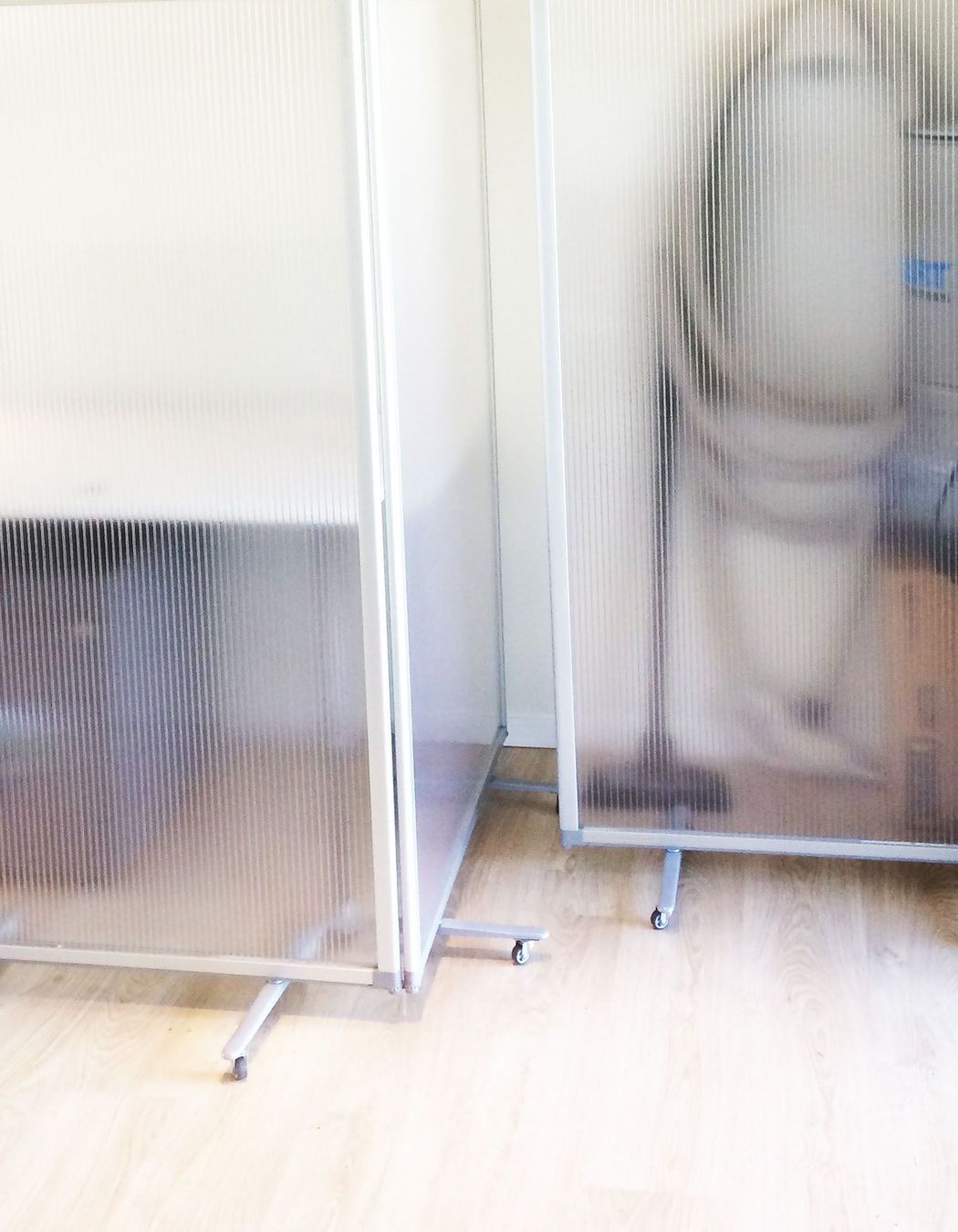 ArchiPro Project Summary - Conversion of a home garage into a functional workspace for three to four people, featuring custom overhead storage, a dual-purpose client waiting area, and efficient use of space with integrated amenities, completed in a four-week turnaround.